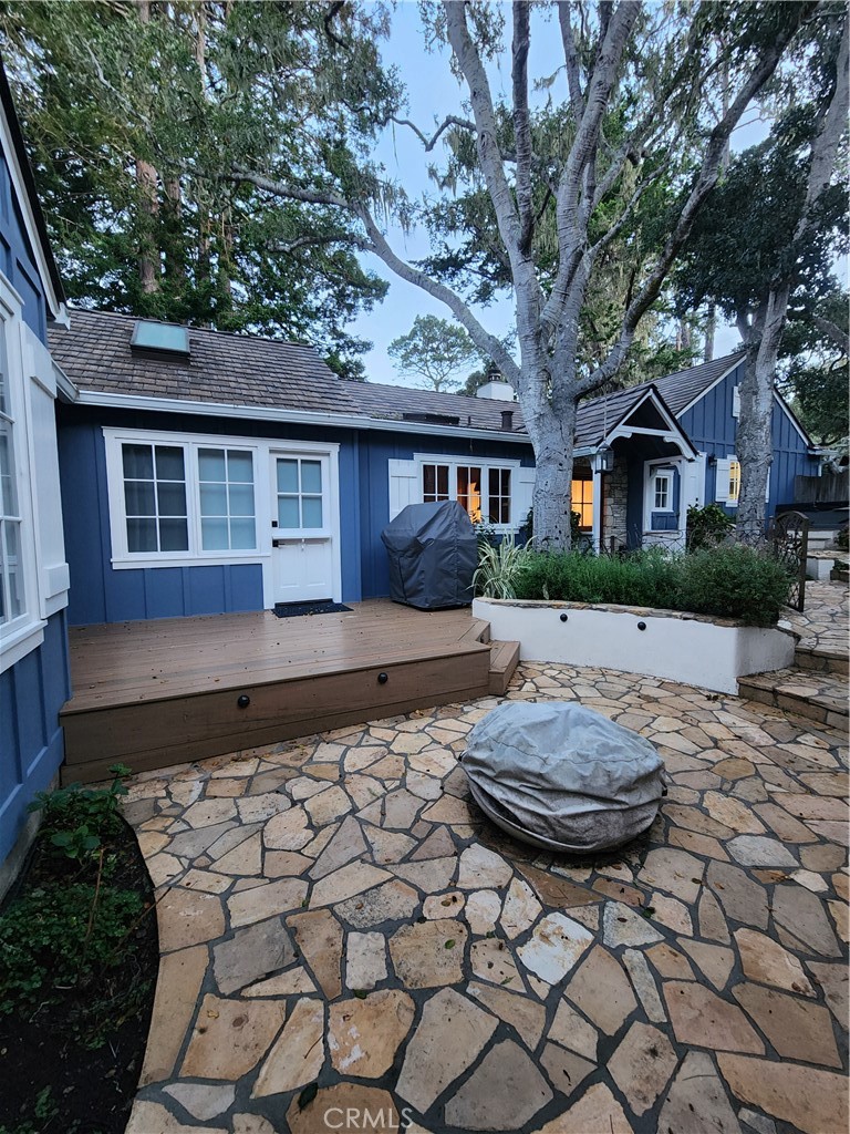 This beautiful, newly renovated, **FULLY FURNISHED**, single-story Carmel cottage is ideally located just four blocks from the beach and within easy walking distance to town. The home is warm and welcoming, featuring a Belgian-influenced design with vaulted ceilings, multiple fireplaces, and character-rich vintage wood lighting throughout the living, dining, and family rooms. The updated kitchen flows into the family room and is thoughtfully designed with French oak cabinetry, handcrafted stone accents, and a statement La Cornue range—equally suited for everyday living and entertaining. The primary bedroom enjoys peaceful garden views and opens to a private porch, perfect for quiet mornings or relaxed evenings. An en-suite bathroom includes a soaking tub. The second bedroom offers a built-in bed with storage and an integrated workspace, while the third bedroom provides additional privacy for guests or family. A two-car garage with laundry and generous storage adds convenience, while the serene garden and fire pit create an inviting outdoor setting for gathering or unwinding. Combining timeless Carmel charm with refined updates and a walk-to-town-and-beach lifestyle, this home offers a rare and inviting retreat.