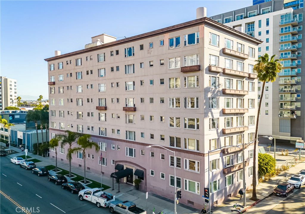 Gorgeous panoramic views from the top floor of this corner unit overlooking the ocean and beautiful downtown Long Beach. These views are breathtaking at any time of day or night and are a must-see in person. Located in the well-known Artaban building, this large one-bedroom unit has a second room set up as an office space, ideal for work from home or having guests enjoy your home with the fantastic views. You can enjoy ocean views from the living room and bedroom. As you enter the building, you are greeted by the lobby, which takes you back in time to appreciate the history of this building. Enjoy the top roof level solarium with amazing views and a setup your friends will never want to leave. The building has a community laundry onsite, an exterior garden area with outdoor seating, and a bike storage room. The HOA includes water, electricity, gas, and building maintenance. There are local options for parking, and the next best thing besides the views is that it is located downtown, close to Shoreline Village, The Queen Mary, The Aquarium, various restaurants, and easy access to the freeways. This home lets you put love into an amazing space with breathtaking views.