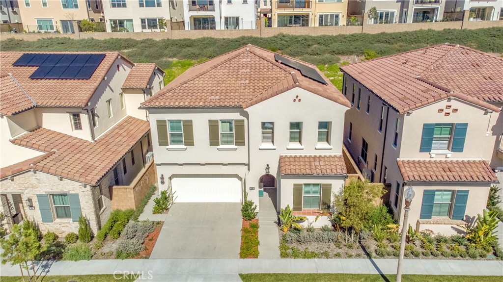 Situated in the highly sought-after Portola Springs village, this elegant contemporary residence offers 4 bedrooms and 4.5 bathrooms, blending thoughtful architectural design, light-filled interiors, and refined finishes in one of Irvine’s premier master-planned communities. A main-level bedroom is privately positioned off the foyer, ideal for guests, multigenerational living, or a dedicated home office. The entry opens to a dramatic living room with a grand two-story ceiling, creating an impressive sense of scale and openness. Floor-to-ceiling sliding glass doors extend the space to a beautifully landscaped backyard with low-maintenance turf and generous usable area—perfect for outdoor dining, recreation, or future customization—seamlessly embracing the indoor–outdoor lifestyle. Designed with a true open-concept layout, the living, dining, and kitchen areas flow together to create an inviting and highly functional gathering space. The kitchen opens to the dining area, where oversized windows frame views of the backyard and bring in abundant daylight. Highlights include an oversized center island, full backsplash, high-end appliances, a walk-in pantry, and floor-to-ceiling white cabinetry offering exceptional storage. The first floor features newly installed luxury vinyl flooring, combining modern style with durability. The home also includes fully paid-off solar panels, supporting energy efficiency and long-term savings. Upstairs offers a dedicated laundry room and three en-suite bedrooms, providing privacy and comfort for every household member. Two secondary bedrooms face south and enjoy excellent natural light throughout the day. The oversized primary suite overlooks the backyard and includes a spa-inspired bathroom with dual vanities, a freestanding soaking tub, and a glass-enclosed walk-in shower with full-height tile surround. Surrounded by preserved open space, Portola Springs residents enjoy access to over 15 pools and parks, playgrounds, sports courts, and miles of hiking and biking trails. The community is served by award-winning Irvine Unified schools and is conveniently located near shopping and dining.