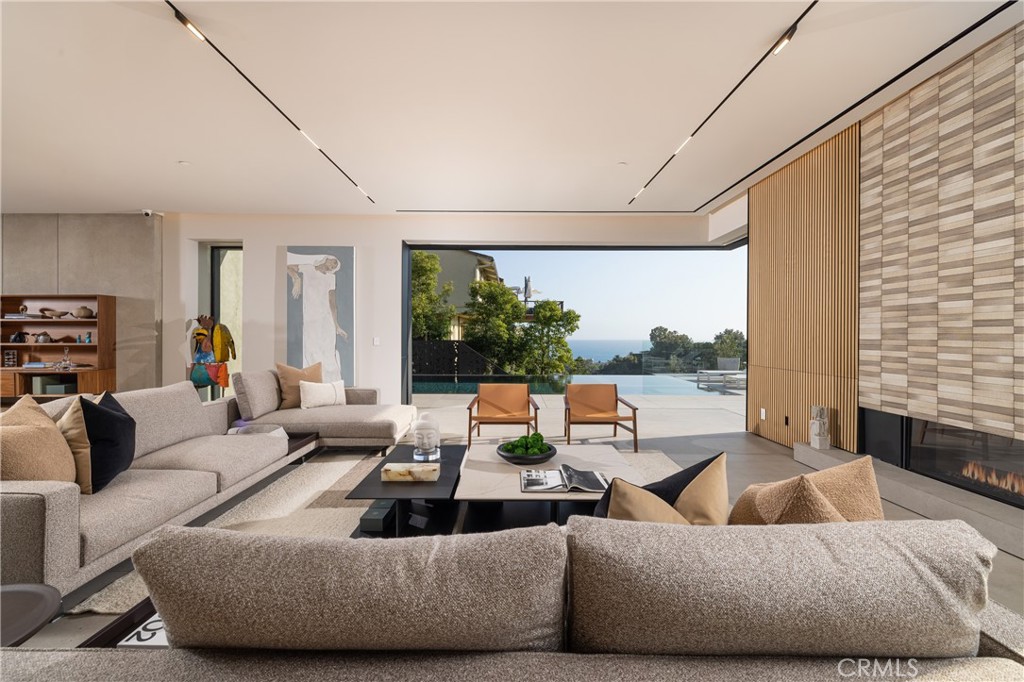 A true architectural marvel, 1000 Oriole is an iconic property that pushes the boundaries of modern architecture and design while capturing the essence of a modern-day residential masterpiece. The stunning architectural jewel has been designed by the esteemed and award-winning architectural firm Tag Front Architects. This newly built contemporary retreat offers breathtaking views of the Pacific Ocean, canyon landscapes, and twinkling city lights by night. It showcases a masterful blend of top-tier materials such as concrete, glass, metal, and various uses of wood. Beyond the private gated entrance, residents and guests will experience natural modern elements with coastal elegance, complemented by ultra-sleek design styling typically found in Hollywood Hills and LA modern architecture. Spanning approximately 6,300 square feet on an oversized 1.4-acre lot, the ocean-view residence offers four well-appointed bedroom suites, four-and-a-half lavish baths, a media lounge, and a bonus media room on the lower level. The interiors are flooded with natural light, thanks to floor-to-ceiling windows and sliding glass pocket doors that open up to ocean-view decks, weaving the indoor and outdoor spaces into one. A set of floating architectural staircases and a private elevator ensure effortless movement through the home’s three levels. The main level is an entertainer’s dream oasis, highlighted by the open-concept Molteni&C | Dada kitchen and chic dining area, accentuated by the dual sitting room configuration and sophisticated media lounge clad with slatted wood wall coverings, a temperature-controlled glass-enclosed wine wall, and a beautiful Japanese tiled fireplace wall. Outside, the ocean-view deck hosts a saltwater infinity-edge pool and spa, giving the home a setting rivaling the best 5-star resorts. The lower level provides access to two spacious bedroom suites and a versatile bonus media/game room and art studio, with potential to add a home gym boasting incredible views above the pool. Impeccable master craftsmanship is evident throughout the home, with premium materials such as large-slab tile and rift-cut white oak wide-plank flooring, as well as smart-home technology integrated seamlessly. Just moments away from Laguna’s iconic beaches, art galleries, and best dining locations, this bespoke residence is the perfect environment to live one’s best life and revel in the ultimate coastal lifestyle.