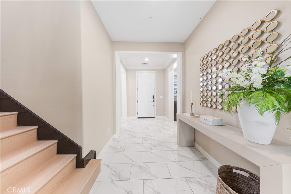 Corner-lot luxury home in Beacon Park at Great Park! This 3,250 sqft residence stands proudly as the most prominent, eye-catching home on the street, with a grand, wide front entrance and abundant natural light. It features 5 bedrooms and 5.5 baths, each with its own en-suite. A standout feature is the first-floor private suite, ideal as a secondary master with sitting room, bedroom, and full bath—perfect for guests or multi-generational living. Another first-floor bedroom offers flexible use as an office, gym, or guest suite. Upstairs, the main master and additional bedrooms provide ample family space, plus a spacious balcony with views of the Bosque trail. Set on a 5,283 sqft lot, the home boasts a beautifully landscaped backyard. The interior includes a gourmet kitchen with high-end appliances, a large center island with a built-in wine cooler, and luxury tile floors extending to the California Room—perfect for entertaining. Thoughtful upgrades such as an epoxy-coated garage floor, plantation shutters, and enhanced tile flooring on the first level further elevate the home’s comfort and elegance. Energy-efficient design keeps the home comfortable year-round. Enjoy 1.8-mile Bosque trails, parks, and recreational amenities, with top-rated schools within walking and biking distance—Beacon Park K–8 and Portola High. The community is evolving with world-class amenities under development, including sports fields, library, museums, botanical garden, artificial lakes, and an open-air theater. This home combines luxury, functionality, and lifestyle in the heart of Great Park—truly a standout opportunity.