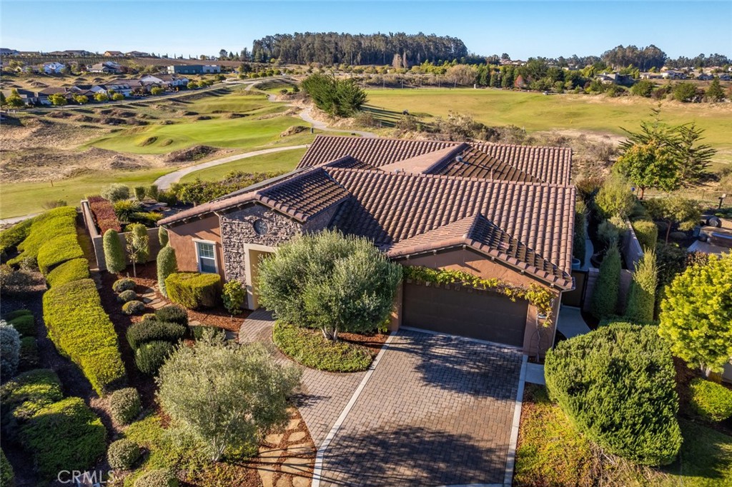 Welcome to an Avila like no other. This stunning home with a prime cul-de-sac location, offers an elevated southwest golf course view. Sunsets every night! The redesigned kitchen has an extended island and dedicated dining space in front of a sliding wall of glass. A clever realignment of space created a third en-suite bedroom, den/office with industrial style glass barn doors, and an art studio with walk-in closet (easily a 4th bedroom). The 2+ car garage provides space for storage or golf cart parking. Other features include wood flooring, plantation shutters, linear fireplace insert in great room, a culinary kitchen with Shaker-style cabinetry, top-of-the-line stainless appliances including gas cooktop, industrial hood, built-in refrigerator, wine cooler, quartz countertops, subway tile backsplash, and a walk-in pantry with etched glass door. The owner’s quarters are large and inviting with direct patio access, sitting area, linen storage, fully-customized his and hers walk-in closets, and a spa bath with dual sinks, Silestone counters, seamless glass shower enclosure and Roman tub. Outside is an oasis with built-in fire pits on both the courtyard and back patio, a built-in barbecue, raised garden beds, pergola, meandering flagstone pathways, fruit trees, and magnificent golf course and hillside vineyard views. Understated landscaping and custom glass front door give this Avila unique curb appeal. LifeSource water filtration, solar panels and a tankless water heater make this home both efficient and cost effective. Best of all, this thoughtfully designed custom home is located in Trilogy with all its resort-style amenities.