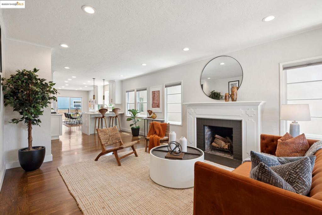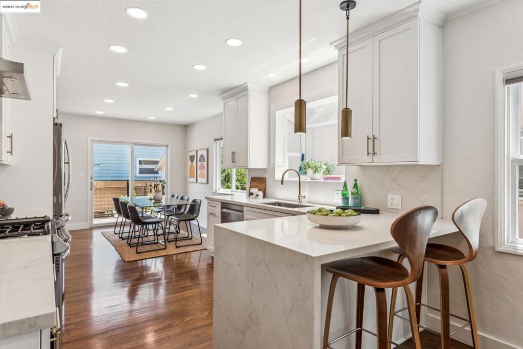 Tucked on a quiet street just one block from Otis Elementary, this beautifully updated 4+BD/3BA East End home offers a blend of classic details and well-chosen modern upgrades. The light-filled kitchen features quartz countertops, a gas range, microwave drawer, breakfast bar, and an airy open floor plan that flows naturally into both the living and dining areas. Slide open the doors to the Batu and redwood deck—perfect for morning coffee. The backyard patio is ideal for entertaining, with garden beds lining the yard’s perimeter, including a lovely lemon tree to supply your summer lemonade stand. On the main level, there’s one bedroom that opens onto the rear deck, alongside a full bathroom with porcelain tile and circular pedestal sink. Upstairs are three additional bedrooms and two full baths, including a spacious primary en-suite with a generously sized walk-in closet plus bathroom with marble flooring & double vanity. A bonus room with French doors offers space for an office or nursery. Additional upgrades include a new foundation & HVAC (2018), water heater (2022), custom energy-efficient blinds, and compliant sewer lateral. Close to Encinal Market, Feel Good Bakery, and Oakland Airport, with a park across the street that has tennis courts, fields, and a playground.