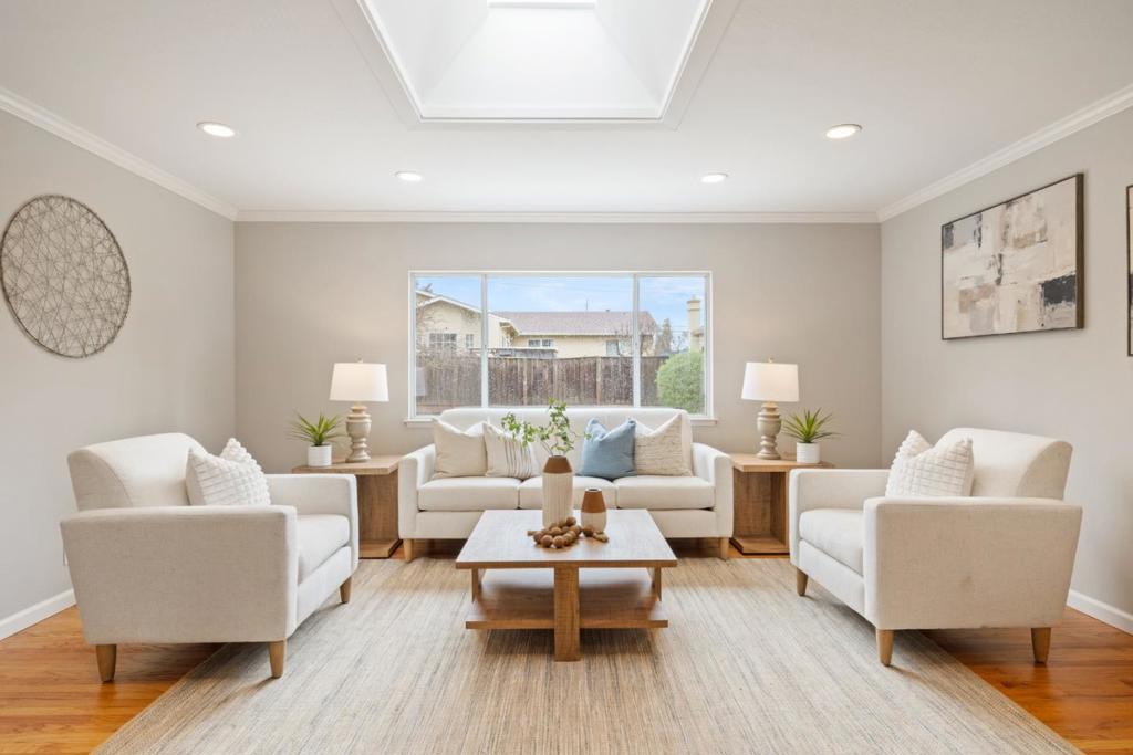The refinished hardwood floors, flowing seamlessly through the entry, living room, and most bedrooms, set a classic and inviting tone. The kitchen is a chefs dream, featuring natural wood cabinets, a walk-in pantry, sleek stainless steel appliancesincluding a double wall ovenand brand-new luxury vinyl plank flooring that effortlessly connects the dining area and family room. Sun tunnels and a skylight bathe the space in natural light, creating an environment that is bright, airy, and perfect for everyday living or entertaining. A fourth room offers flexible functionality, ideal as a home office, playroom, or creative studio. Fresh interior and exterior paint enhance the homes move-in-ready appeal, while the spacious, private backyard provides the perfect setting for outdoor gatherings, gardening, or simply relaxing in the sunshine. This homes location is truly exceptional. Situated near parks, top-rated Cupertino schools, shopping, major freeways, and Apple campuses, it offers both convenience and a sense of community. Portal Park and local hospitals are just minutes away, making this an ideal choice for modern living.