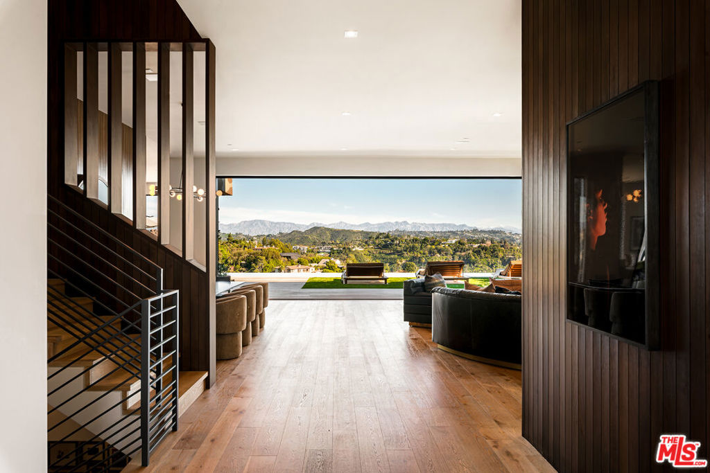 Masterfully conceived by HEH in collaboration with Von Studnitz Architects and Studio Preveza, this exceptional furnished residence was designed as the personal home of an experienced developer/owner, one who truly did not miss a beat. Perfectly positioned at the end of one of Bel Air’s most coveted and private view streets, the property offers rare privacy paired with breathtaking scale and presence. Behind gates and mature landscaping, the home reveals sweeping 270-degree views spanning Downtown Los Angeles, city lights, canyons, and the Pacific Ocean. Mornings begin with a beautiful sunrise from the primary suite, while evenings unfold with dramatic sunsets from both the front and rear decks, creating an ever-changing backdrop of light and atmosphere throughout the day. Inspired by the refined, effortless aesthetic of James Perse, the residence captures the essence of elevated California living modern yet warm, sophisticated yet relaxed seamlessly blending indoor and outdoor spaces. Impeccably finished, the open-concept floor plan is designed to frame panoramic city and ocean views from nearly every major room, complemented by rich, natural materials throughout. The layout includes a private first-floor bedroom suite thoughtfully separated from the main living areas, along with a dedicated office ideal for an owner constantly on the move. There are six spacious bedroom suites, including a luxurious primary retreat with a sitting room and private balcony, as well as subterranean guest quarters with a separate entrance, offering privacy and flexibility. Every detail reflects intention and experience from the private home theater and beautifully scaled living spaces to the seamless indoor-outdoor entertaining areas. Outdoor sitting and dining zones overlook a curated vegetable and herb garden, surrounded by citrus trees, French lavender, and Tuscan rosemary evoking a true Italian villa sensibility. The result is a rare fusion of California ease with a European, Italian-inspired lifestyle that feels romantic, timeless, and deeply livable. The outdoor experience is anchored by a 40 foot infinity-edge pool, expansive decks, and serene hillside gardens, creating a private urban oasis. Additional amenities include a state-of-the-art kitchen, fitness studio, three-car garage, and a wide, flat motor court accommodating three large SUVs or low-profile sports cars with ease. Designed with precision, warmth, and timeless restraint, this is a furnished modern architectural residence in one of Bel Air’s most desirable locations a property that must be seen in person to fully appreciate.