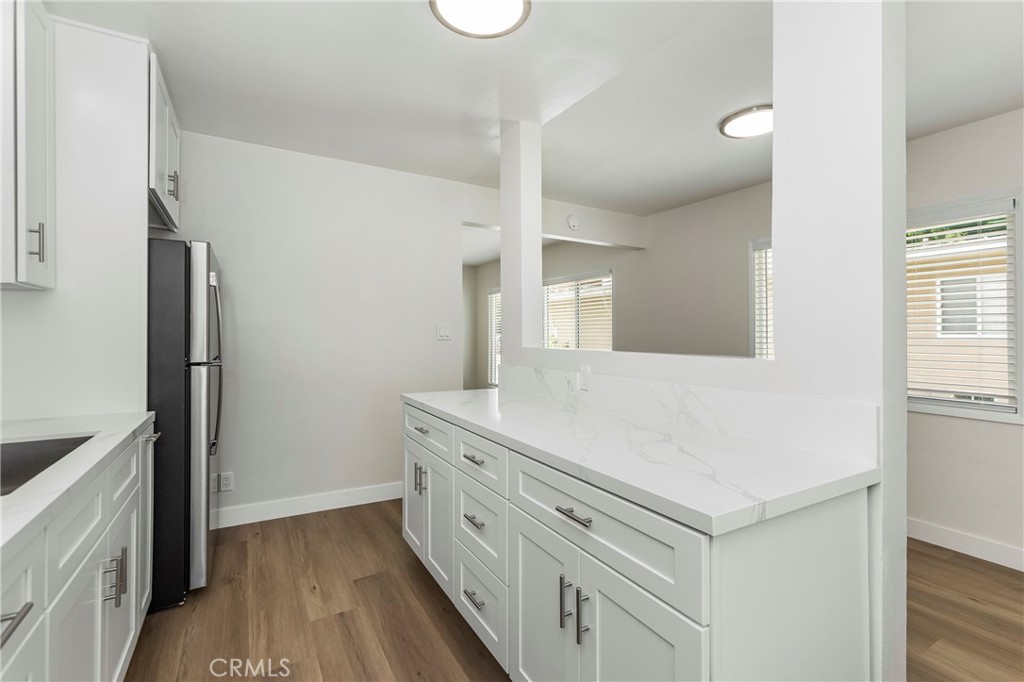 Newly renovated 2-bedroom, 1-bath home in Bellflower, conveniently located near the 91 freeway for easy commuting. This upgraded home features brand-new shaker cabinets, quartz countertops, and durable wood laminate flooring throughout with carpet in the bedrooms. The kitchen includes all new stainless steel appliances, including a electric range, microwave and refrigerator. Additional features include a one-car attached garage, storage shed, and a spacious private backyard. Washer and dryer hookups are located outside. Gardener service is included in the rent. Unfortunately NO PETS- Don’t miss this beautifully updated home in a great location—schedule a viewing today!