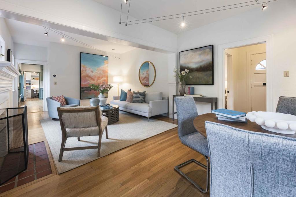 Tucked behind a white picket fence on a tree-lined street in the Professorville neighborhood, this charming home pairs more than 120 years of heritage with comfortable, everyday livability. A brick path leads to the front door and into a warm, welcoming space filled with natural light, hardwood floors, and period details throughout. The large living and dining room combo is anchored by a fireplace, while the kitchen features appliances from Bosch, GE Profile, and Sub-Zero. A walk-out flexible use room provides space for an office or family room, and the bedrooms include a comfortable primary suite on the main level. Outside, a peaceful yard with a deck and patio invites easy indoor-outdoor living. All of Palo Alto is within easy reach, from the vibrancy of University Avenue to Stanford, beautiful parks, and top-rated schools Addison Elementary, Greene Middle, and Palo Alto High (buyer to verify eligibility).