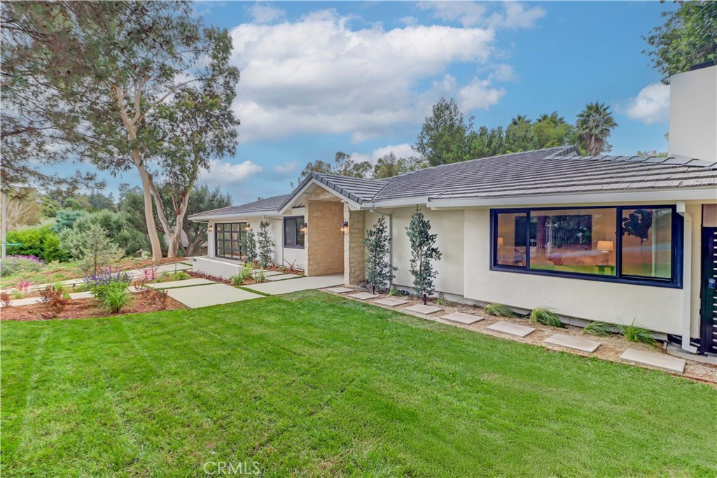 Searching for a single-story modern masterpiece tucked away amid the gentle slopes of North Tustin? This fully renovated 5-bedroom, 3-bath residence in the prestigious Cowan Heights neighborhood blends architectural elegance with everyday functionality on a private 0.37-acre lot, surrounded by mature trees and hillside serenity! From the moment you arrive, many sleek black-framed dual-pane windows and a custom metal pivot door set the tone for the design-forward touches that continue throughout the home. A striking stone archway and chandelier welcome you into an open floor plan filled with natural light from strategically placed skylights. Smooth drywall, soothing neutral hues, luxury vinyl flooring, and contemporary finishes create a clean, organic aesthetic that’s both stylish and comfortable. The generous living room, centered around a sculptural bespoke plaster fireplace, flows effortlessly into a nearby dining alcove and kitchen ready for conversation and culinary endeavors. Cook with confidence using the French-inspired range beneath a handcrafted hood, surrounded by quartzite countertops, abundant cabinetry, stainless steel appliances, and a multi-seater island suitable for casual gatherings. A new mud room with a substantial pantry adds to the abode’s many flexible spaces. Retreat to the primary bedroom with its patio access and spa-like ensuite featuring an oversized frameless shower with dual showerheads. A junior suite offers its own exterior entrance, pass-through bath, and a separate sitting area—ideal for guests or multi-generational living. Every bath and closet door in the residence is customized, and each shower features luxurious tile work, creating a sense of refined craftsmanship everywhere you turn. Stunning French and sliding glass doors invite you into a secluded courtyard or custom-landscaped backyard where synthetic grass, new concrete embellishments, and views of the adjacent ravine offer an idyllic outdoor escape. The fenced side yard is perfect for weekend BBQs or evenings with cocktails under the stars. You’re conveniently located just a short drive from shopping destinations, a multitude of entertainment options, and the nature trails of Santiago Canyon and Irvine Lake. This home also offers proximity to award-winning schools in one of Orange County’s most sought-after communities. Come see how design, comfort, and character come together at this striking haven and imagine yourself a part of it all!