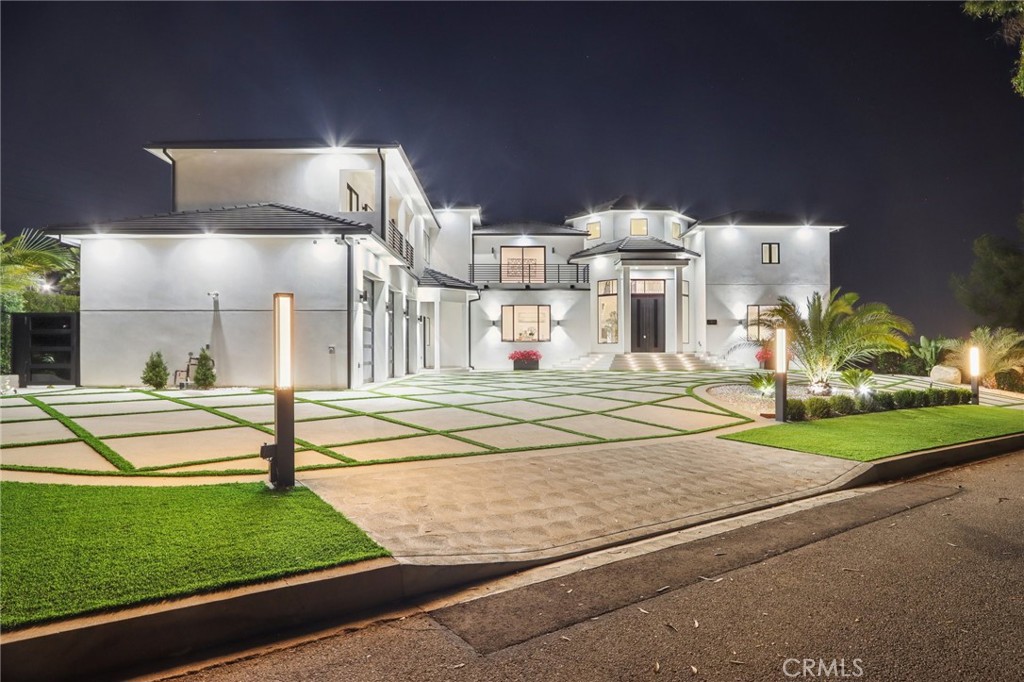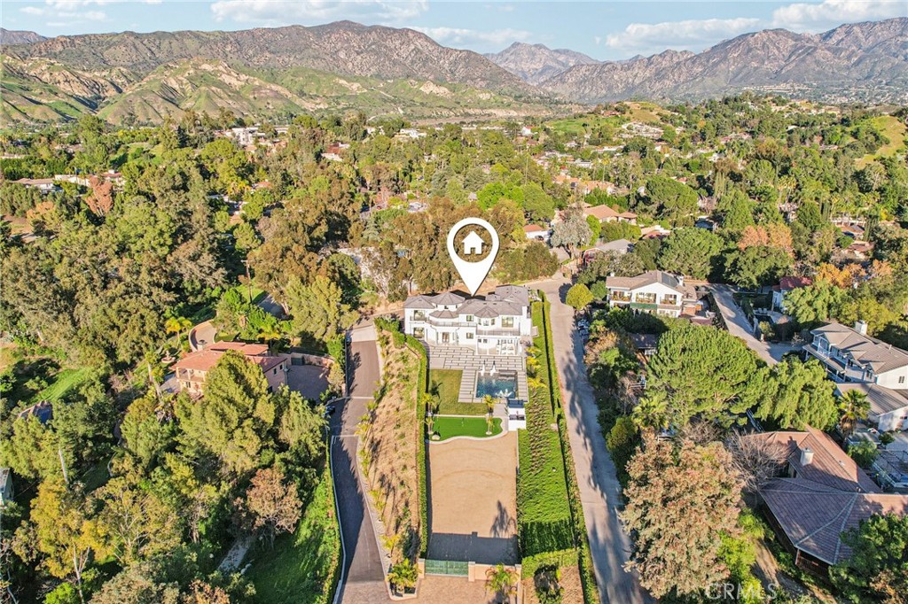 Brand-New Shadow Hills Stunner | Ultimate Luxury Estate! Welcome to luxury living at its finest. This brand-new Shadow Hills estate spans over 5,600 square feet of impeccably designed living space and delivers a true entertainer’s masterpiece. Enter through custom wrought-iron doors into a breathtaking formal foyer showcasing soaring two-story ceilings and a dramatic double staircase—a striking architectural statement from the moment you arrive. The step-down living room features a sleek modern electric fireplace, creating the perfect ambiance for entertaining. A formal dining room seamlessly transitions into the family room, highlighted by wall-to-wall folding glass doors that invite indoor-outdoor living at its best. At the heart of the home lies a one-of-a-kind chef’s kitchen, complete with a massive center island, Taj Mahal quartzite countertops, sophisticated German cabinetry, and top-of-the-line Miele appliances—a dream for both chefs and design enthusiasts alike. The expansive primary suite is a private retreat, featuring a spacious balcony with stunning mountain views, a generous walk-in closet, and a spa-inspired en-suite bath with soaking tub, dual vanities, and an oversized walk-in shower with rain head and floor-to-ceiling designer tile. Step outside to a true resort-style backyard, designed for ultimate entertaining. Enjoy a covered patio with fireplace, a Baja-style pool with waterfall, oversized spa, putting green, and lush landscaping supported by a drip irrigation system. The property also offers ample space for a guest house or sports court, just under an acre of land, a three-car garage with direct access, and a grand circular driveway. Without a question, the finest luxury estate Shadow Hills has to offer.