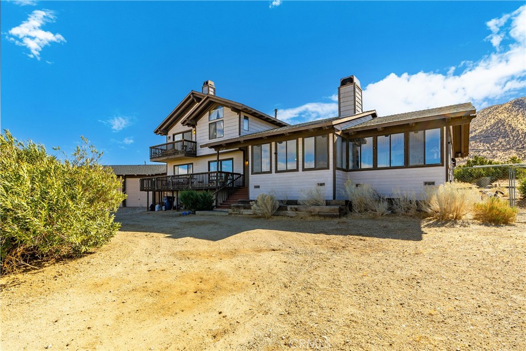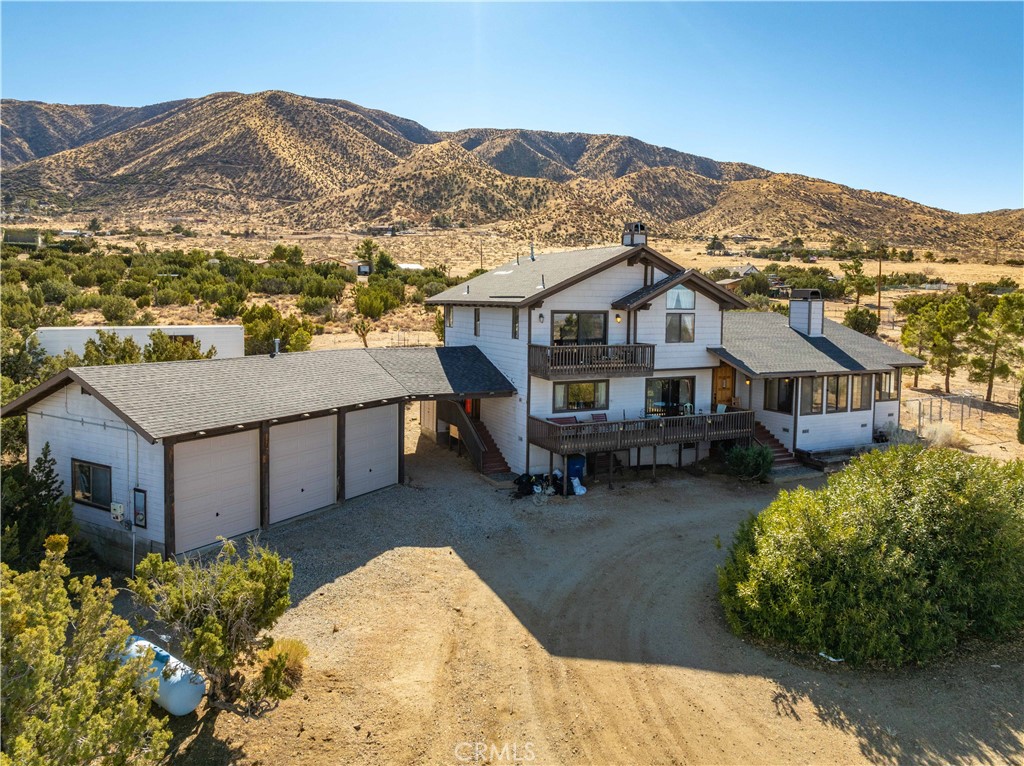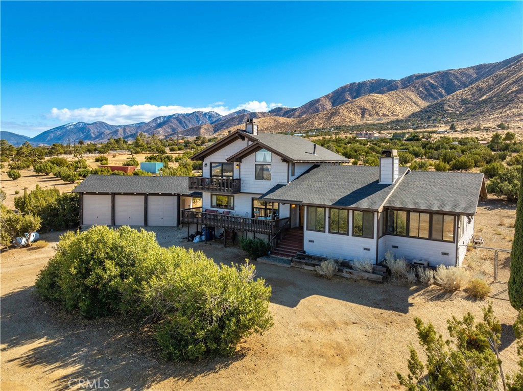 Welcome to this one of a kind Juniper Hills ranch home, where breathtaking mountain and valley views surround you at every turn. As you arrive, a charming covered double-door entry sets the tone for what’s inside. Step inside to beautiful hardwood floors that lead you to a grand living room, featuring soaring vaulted wood ceilings and an abundance of natural light streaming through large windows that capture panoramic valley views. A two-sided stone fireplace seamlessly connects the living and family rooms, creating a warm and inviting space. The family room also boasts a unique loft, perfect for a cozy reading nook or creative hideaway. Plus there’s even a photographer’s dream darkroom for those with a passion for photography. The formal dining room is an entertainer’s delight, complete with wood flooring, crown molding, and oversized windows framing stunning views. Step onto the expansive balcony and soak in the beauty of the surrounding landscape. The chef’s kitchen is designed to impress, featuring granite countertops, under-cabinet lighting, a double oven, and an oversized informal dining area with unmatched views of the mountains and valley below. A large sliding door leads to the back patio, where you can relax and enjoy the peaceful scenery. Downstairs, you’ll find two spacious bedrooms and a full bathroom with double sinks and plenty of counter space. Upstairs is your private retreat. A luxurious primary suite with vaulted wood ceilings, tile fireplace, and a private balcony that offers unforgettable valley views. The fourth bedroom is light and bright, making it perfect for a guest room, home office, or creative space. And we can’t forget the massive oversized 3-car garage, with exceptionally high ceilings, fully drywalled, air conditioned and heated. Plus a covered breezeway connecting it to the home. Sitting on 2.11 acres, this property offers rear fencing and leased solar, giving you privacy, space, and sustainability in a truly spectacular setting.