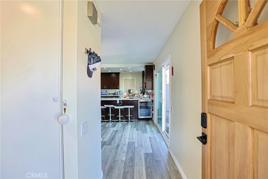 Rarely available CORNER END-UNIT townhome in the highly desirable SummerTree Community of Stanton, featuring FULLY PAID-OFF SOLAR and an upgraded electrical system ready for EV charging. Conveniently located near shopping, dining, parks, Stanton Central Park, and major freeways. This well-maintained home offers approx. 1,402 sq ft with 4 bedrooms and 2 bathrooms, including a HIGHLY SOUGHT-AFTER DOWNSTAIRS BEDROOM WITH FULL BATH, ideal for guests, multi-generational living, or a home office. The bright, open living and dining area flows into an upgraded kitchen with quartz countertops, ample cabinetry, stainless steel appliances, wine fridge, and built-in wine rack. Upstairs features three additional bedrooms and an updated full bathroom. Additional features include central A/C & heating, dual-pane windows, air scrubber with UV light, and a direct-access 2-car garage. Enjoy a private backyard patio with low-maintenance artificial turf and a mature fig tree. Community amenities include pool, clubhouse, playground, greenbelts, and ample guest parking.