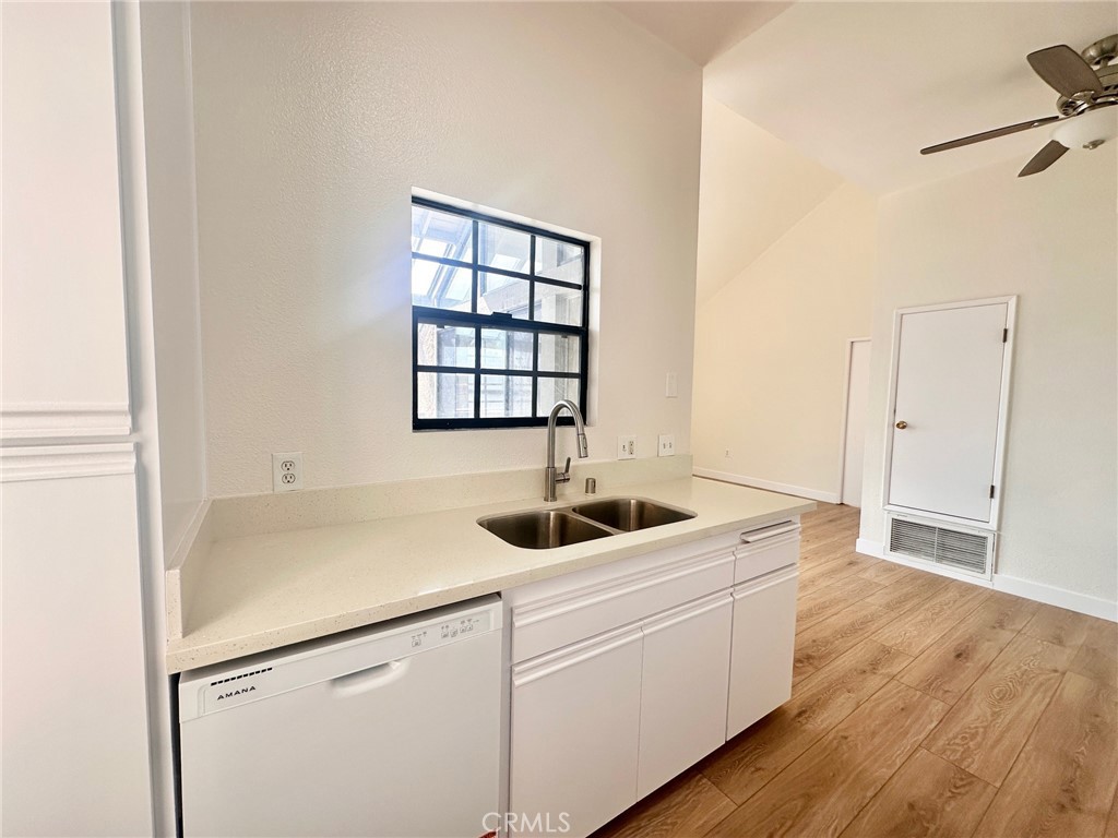 Welcome to this beautifully upgraded vaulted-ceiling 1-bedroom, 1-bath condo in the desirable gated Lakeside community of Garden Grove. This inviting home features new flooring, fresh paint, and updated fixtures throughout. Enjoy your own private entrance, a spacious private porch perfect for relaxing, and a conveniently updated washer and dryer closet. The assigned parking space is located directly below the unit for easy access. This is an end unit with no one above or below you. Lakeside offers resort-style living with two swimming pools and spas, a clubhouse, and peaceful walking trails surrounded by running streams. The HOA includes trash, water, and sewage. An excellent location and a wonderful place to call home—don’t miss this opportunity!