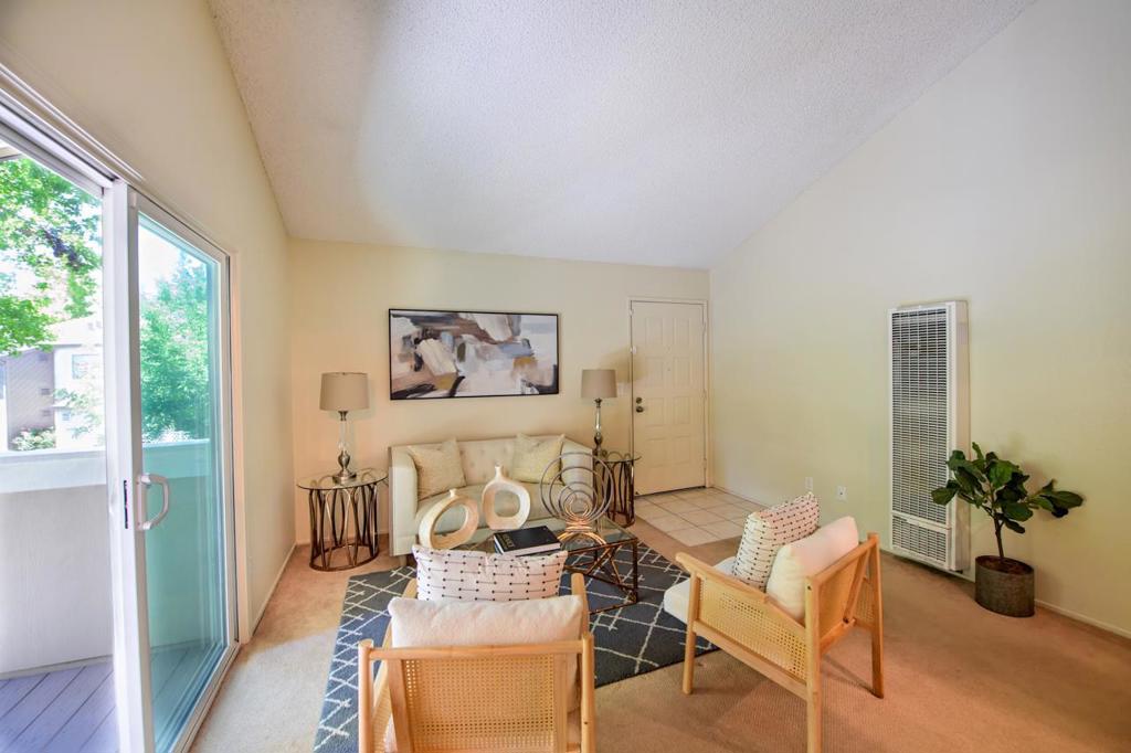 Beautifully maintained 1-bedroom, 1-bathroom condo. An exceptional opportunity for someone looking for low-maintenance, high-efficiency lifestyle in a prime location. Open-concept design with vaulted ceilings allows for plenty of natural light. The gourmet-inspired kitchen features sleek granite countertops, newer cabinets, essential stainless-steel appliances, motion sensor touchless faucet and a dual-stage water filtration system. Dining area has a dedicated breakfast bar for an ideal setting for casual dining. Spacious primary bedroom with a large walk-in closet for optimized storage. A sliding glass door with direct access to a private patio overlooking the professionally landscaped grounds perfect for a relaxing patio experience. In-unit laundry-washer and dryer included. Two supplementary outdoor storage closets to help maximize your interior usable storage space. Located just a short drive to San Jose State University and biking trails. Proximity to major retail centers, Costco, the local mall and easy access to major freeways. This is your opportunity to own a move-in-ready condo. Exceptional value in a prime location.