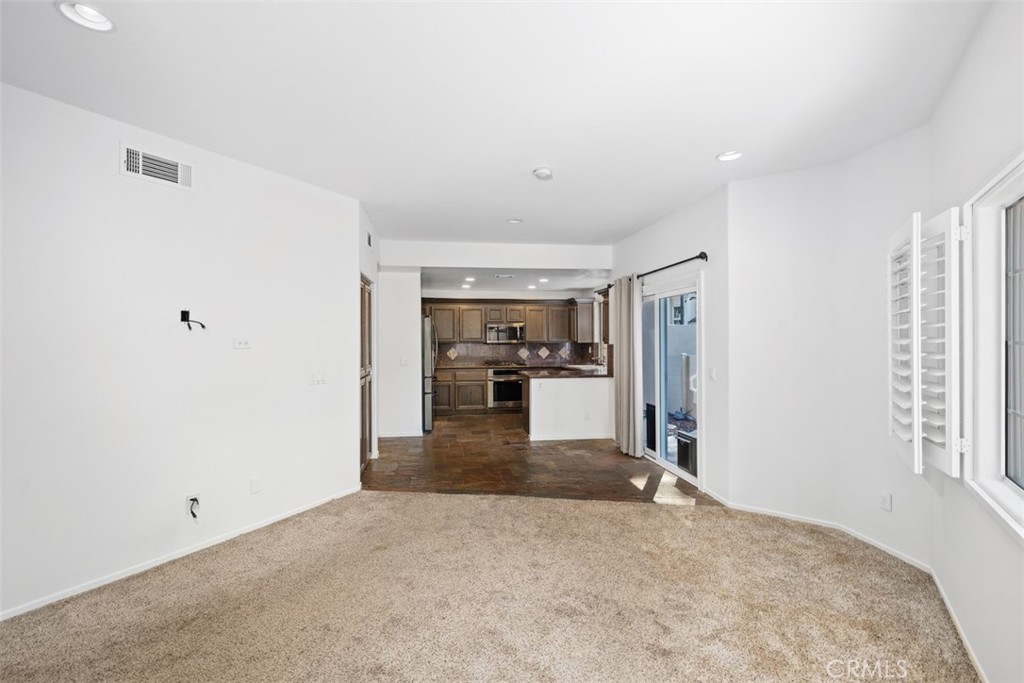 Corner location with extra windows, high ceilings, and an airy, generous footprint. This end-unit townhome connects living, dining, and kitchen spaces on the main level and opens to a large patio that lives like a backyard for outdoor dining and lounging. Upstairs, a versatile loft features a built-in seating nook which opens to a balcony. All bedrooms are upstairs: a spacious primary bedroom with an ensuite bathroom, plus two secondary bedrooms that share a full hall bath with a tub and shower. Practical perks include an attached two-car carpeted garage and offers storage. The guest parking is across the street. A refrigerator is included, and hookups are in place for a full-size washer and dryer. Located across from the community pool, close to amenities, parks, shopping, dining, and the 101. Freshly painted and ready for your move in!