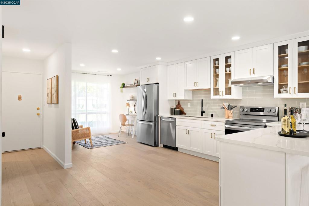 Modern updates meet an unbeatable location! Enjoy Island Living with shoreline views and paths, ferry access, parks, a community pool, and golf at your fingertips. This 3 bedroom, 2.5 bath Garden Isle townhome has been beautifully renovated from top to bottom. The new chef’s kitchen features quartz counters and a peninsula overlooking a landscaped greenbelt, flowing into the bright open living/dining area with hardwood floors and a wood-burning fireplace. Sliding doors open to a fresh patio and direct access to the two-car garage. Upstairs, the primary suite offers a walk-in closet, and a stunning en-suite bath with dual vanities. Two additional bedrooms share a stylish and completely renovated bath. The 2 car garage with epoxy flooring provides space for a car + a home gym. Ideally situated on Bay Farm Island, this home enjoys lush park-like surroundings and proximity to the SF Ferry, Oakland Airport, shops, dining, and top-rated schools. This home offers the full Bay Farm lifestyle. OPEN Sun 1-4pm