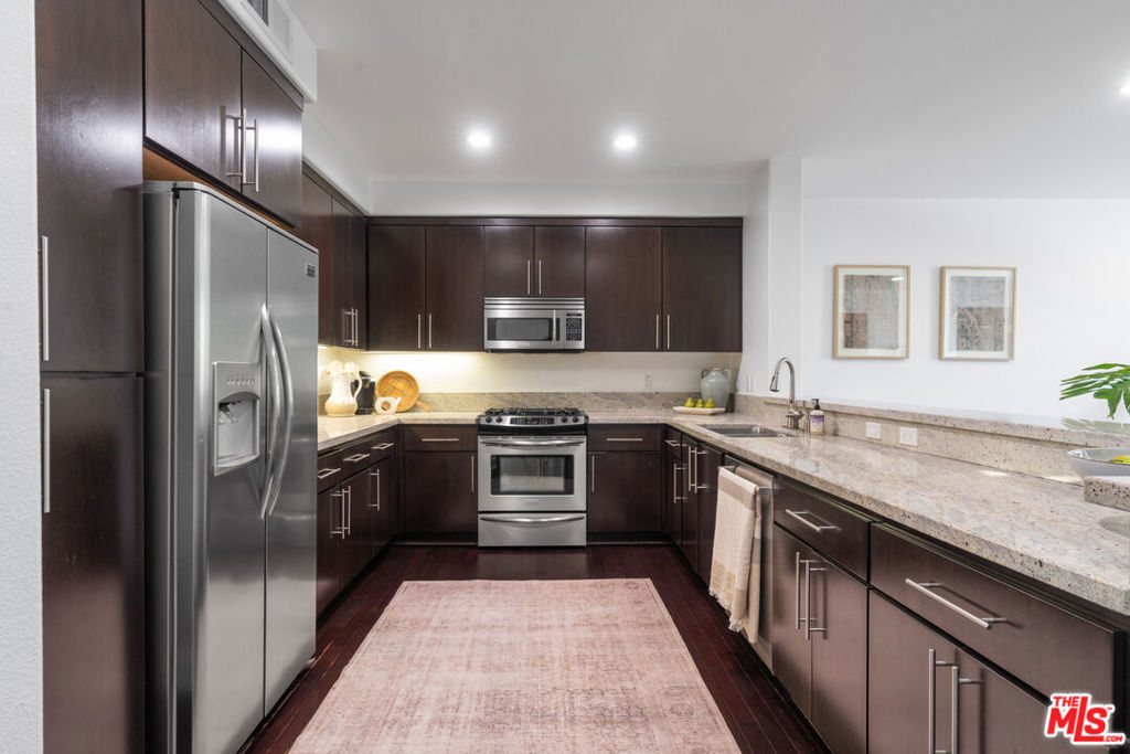 Experience the best of Toluca Lake living in this beautifully maintained condominium. With two spacious bedrooms and two full bathrooms, this home blends comfort and style in a way that’s perfect for everyday living. The kitchen features stainless steel appliances, touchless water faucet, including a Bosch 800 dishwasher replaced in 2024, granite countertops, and modern cabinetry, along with a generous breakfast bar that’s ideal for morning coffee or casual meals. The open-concept layout makes entertaining easy, with the dining area flowing into the inviting living room. Large living room windows maximize natural light, Rich hardwood floors and a fireplace, add warmth and character, making it a perfect space to unwind or host friends. Both bedrooms are well-sized with two triple closets, and the primary suite includes a large walk-in closet. For modern convenience, the property is equipped with a NEST thermostat and a Lockley Keyless Entry Smart Lock. Additional features include in-unit laundry, tandem parking with an EV charger, and secure building access. This newer-construction community has been well-cared-for and is move-in ready. Step outside and enjoy all that Toluca Lake has to offer. Outdoor enthusiasts will appreciate the proximity to Beeman Park, Valley Spring Park, Lakeside Golf Club, and hiking trails at Fryman Canyon, Runyon Canyon, Griffith Park, and the Hollywood Hills. Bikers will love the Chandler Bike Path and other nearby routes. This blend of suburban charm and urban convenience makes the property’s location truly exceptional. With lush courtyard spaces and a prime location, this condo offers the perfect mix of comfort, convenience, and local charm.