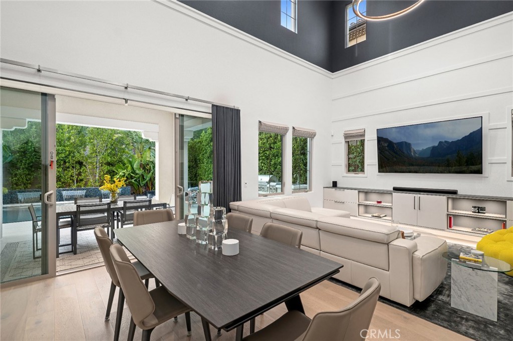 Magnificent Palermo Plan 1 by Taylor Morrison is nestled in the prestigious community of The Groves at Orchard Hills. Situated on an oversized lot with serene avocado orchard views, this home blends functionality with elevated design, boasting $500K+ in custom upgrades. Its open floor plan features soaring ceilings and expansive windows with motorized blackout curtains. A desirable main-level bedroom is perfect for guests or multi-generational living, while the warm wood flooring, crown molding, custom light fixtures, and designer paint enhance the spacious great room and dining area throughout. Gourmet chef’s kitchen showcases a large custom island, premium stainless steel appliances (Subzero fridge/Cove dishwasher), quartz countertops, rich wood cabinetry, and a walk-in pantry. Retreat upstairs to the luxurious master suite which has a spa inspired bath featuring dual sink vanities, designer cabinetry, oversized walk-in shower, and a generous customized walk-in closet. Secondary bedrooms have en suite baths, ceiling fans, and a versatile loft perfect for a home office or media center. The backyard is an entertainer’s dream, fully fenced for total privacy and relaxation. Professionally landscaped with a California patio, built-in custom BBQ, lush greenery, and an elegant grand sized pool complete with jacuzzi and fire pit sitting area. Additionally, the garage has been upgraded with custom cabinetry and designer flooring allowing for plenty of ample storage space. The home also includes an extensive security system and a fully paid solar system for energy-efficient living. Enjoy resort-style amenities within walking distance to pools, parks, clubhouses, hiking trails, and access to California Distinguished Schools.