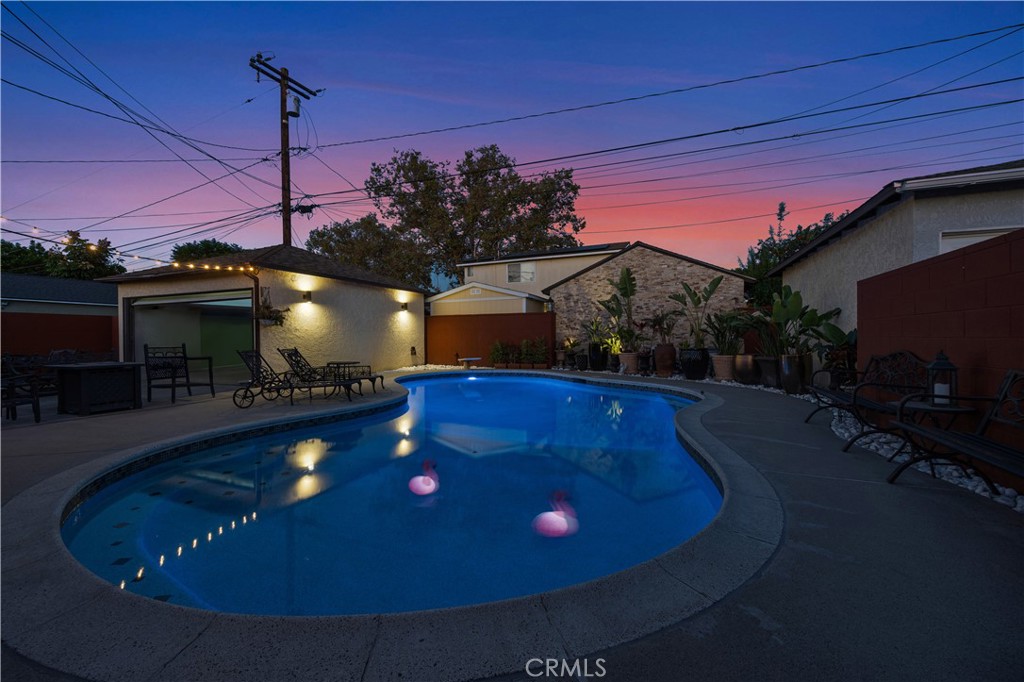 Step into this gorgeous resort-like pool home in one of the quiet cul-de-sacs of Downey, that is perfect for relaxing and entertaining. From the moment you arrive you will be welcomed by a trio of palm trees and newly installed cement pavers in the walkway/driveway/ backyard, and travertine stone walls that frame the house both front and back. Inside, the home offers a comfortable layout of 3 bedrooms which can be closed off from rest of home in case the baby is asleep or your sleeptime varies from other family members. Romantic chandeliers, ceiling fans, and plenty of natural light create a warm and inviting atmosphere. The restrooms have been updated with carrera marble tile walls, vanity and flooring giving the home an elevated spa-like feel. The suite of kitchen appliances all match. The backyard is truly a retreat, featuring a sparkling heated pool, new modern tiles and pebble-tech flooring. On one side you can calmly lounge with friends and do aqua-yoga or play volleyball and on the other you can show off your skills and tricks as you jump into the prestine water from atop the diving board and into this 9 ft deep refreshing attraction. Whether it’s barbeques, pool parties or simply enjoying a quiet evening outdoor poolside under the stars by a gas-lit fire, this backyard has it all. Nestled in North Downey, near Wilderness Park, Costco, Smart & Final, Target, Honda World and quick access to the 5 and 605 fwy, this home blends charm, luxury and convenience into one. Don’t miss a chance to make this gem of a property your own.
