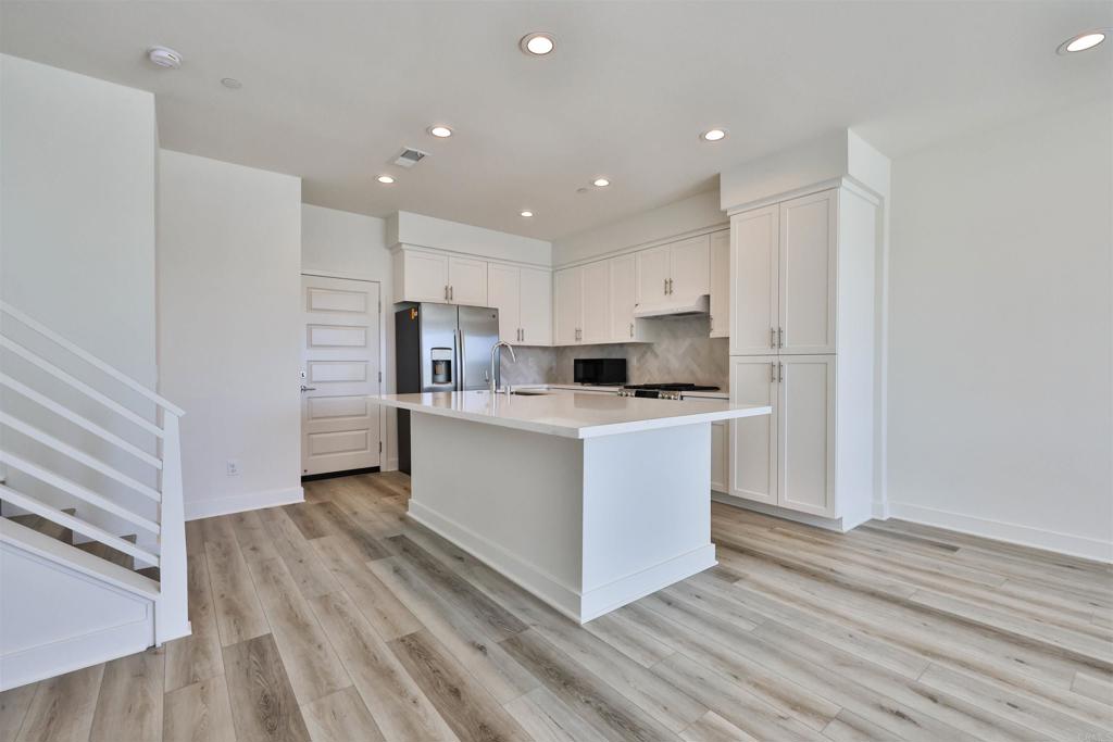 *Flexible lease terms available! Owner will consider short term or long term lease.* Newer construction home in the vibrant 3 Roots Community, bordering Mira Mesa and Sorrento Valley. 2 story townhome featuring an open concept design, gourmet kitchen, smart home features, and high end finishes. This home sits on a premium lot with no neighbors in front and tons of natural light! Luxury vinyl flooring throughout with carpet in the bedrooms. The kitchen is appointed with quartz countertops, stainless steel GE appliances, a beautiful modern herringbone backsplash, and white cabinetry. 2 car garage with built-in storage racks and an EV charging outlet available. Smart home upgrades include Ring doorbell, Wifi garage door opener, high speed wifi and fiber optic cable, and Honeywell Wifi Thermostat. This home will keep your utilities low – you have a 3.0kw solar system, LED lighting, insulated dual pane windows and a tankless water heater. You also have a whole house water purification system and HEPA air filtration. Full size washer/dryer in a dedicated laundry room upstairs. The 3 Roots community features over 200 acres of preserved open space, walking and biking trails, multiple parks, state of the art fitness and rec center. Excellent location in West Mira Mesa/Sorrento Valley. Just 17 miles north of Downtown and a short drive to the coast. Easy access to the 5, 805, and 15 freeways. Highly rated schools: Jonas Salk Elementary, Challenger Middle School, and Mira Mesa High School. Make this home yours! *Dogs considered on approval