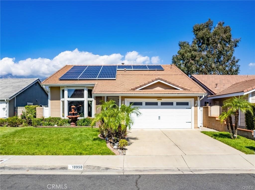 Welcome to a beautifully upgraded Rancho Cucamonga residence offering paid-off solar, resort-style outdoor living, and a flexible floor plan ideal for modern lifestyles. This well-appointed two-story home spans 1,883 square feet with three bedrooms and three bathrooms, including a highly desirable main-level bedroom perfect for guests or multi-generational living. Positioned on a 5,400 square-foot lot with direct mountain and park views to the north, this property provides a rare combination of privacy, comfort, and everyday convenience. Upon entry, you are greeted by a bright and inviting living area that flows seamlessly into the family room and kitchen, creating a natural openness that enhances both daily living and entertaining. The wrap-around layout encourages connection, while the upgraded finishes and thoughtfully designed spaces provide a sophisticated yet warm aesthetic. Upstairs, the home offers additional bedrooms including a converted open-air loft providing valuable flex space that can function as a home office, media area, or easily revert back to a fourth bedroom depending on your needs. The backyard delivers an exceptional outdoor experience with a sparkling in-ground pool, a relaxing spa, and an elevated sense of tranquility reminiscent of a private retreat. A covered deck creates a comfortable shaded area ideal for lounging, grilling, or gathering with friends while enjoying views of the water features and resort-inspired landscaping. The paid-off solar system significantly reduces monthly utility costs, making this home not only beautiful but also energy-efficient and budget-friendly. Located in one of Rancho Cucamonga’s most desirable communities, the property offers easy access to shopping, dining, parks, and top-rated schools including Coyote Canyon Elementary, Ruth Musser Middle School, and Rancho Cucamonga High School. Its central position provides close proximity to major highways, ensuring convenient commuting throughout the Inland Empire and beyond.