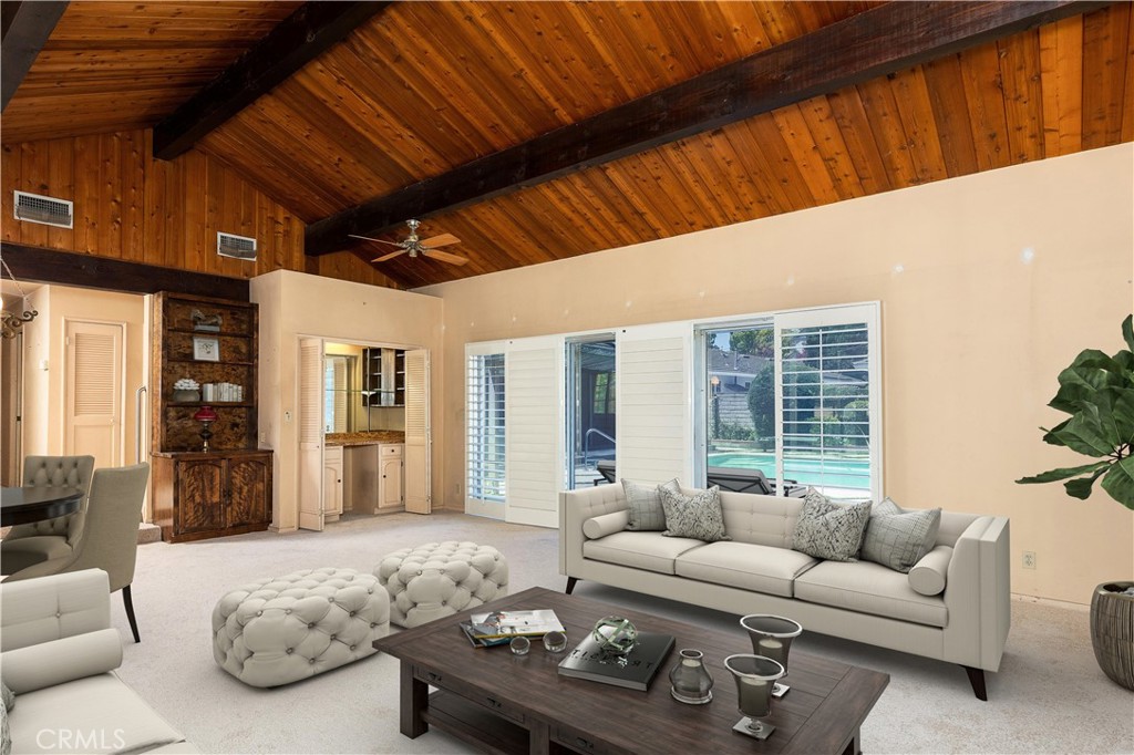 Highly desirable SINGLE level home in the prestigious Lower Rancho area of Arcadia, location, location!!! First time on the market in 50 years. South Facing 13,760 square foot corner lot, 3 Bedrooms 3 baths plus a den/office w/adjoining bar could be 4th bedroom, 2 Car attached garage w/stone driveway. Spacious family room with vaulted wood beam ceilings, fireplace and glass doors leading to the pool, built in book cases and wet bar. Formal dining room with wood floors. Oversized living room with fireplace and sliding glass doors leading to the pool. Primary bedroom with makeup desk and adjoining bath. Kitchen w/tile counters, oak cabinets, wood floors, built in refrigerator. Lush back yard with oversized sparkling pool and extra large patio cover. Tile roof, central air, Laundry room in kitchen, There is no furniture in the home, photos are virtual staging