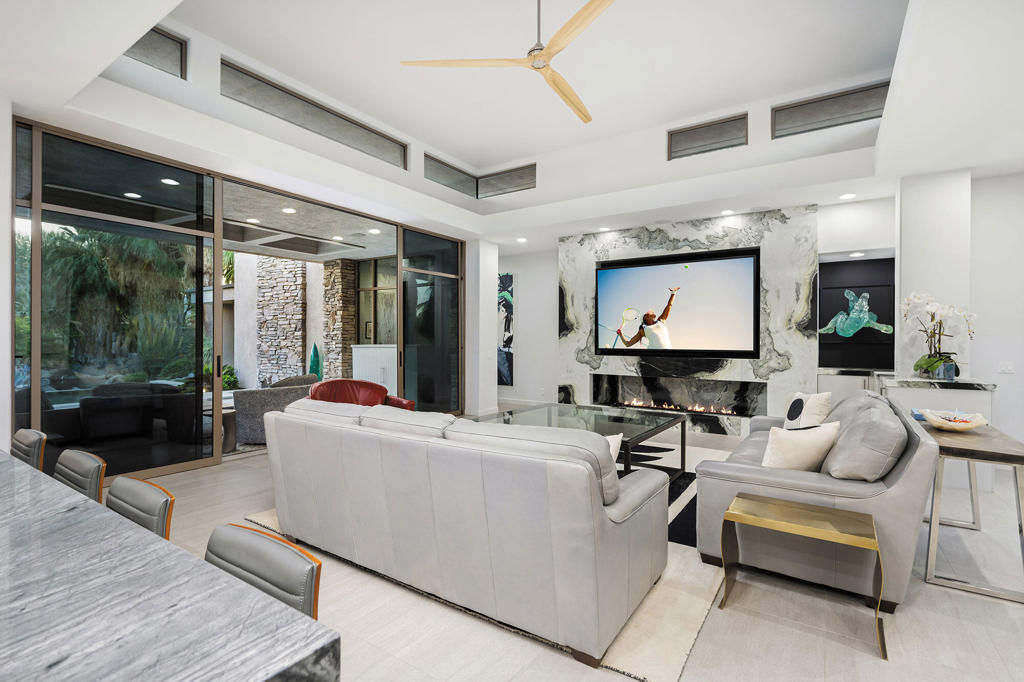 This recently renovated home is tucked privately on a waterfall feature within the gates of BIGHORN Golf Club. With four bedroom suites, an open great room with high ceilings and wonderful outdoor living, this home offers all the features for luxury desert living.