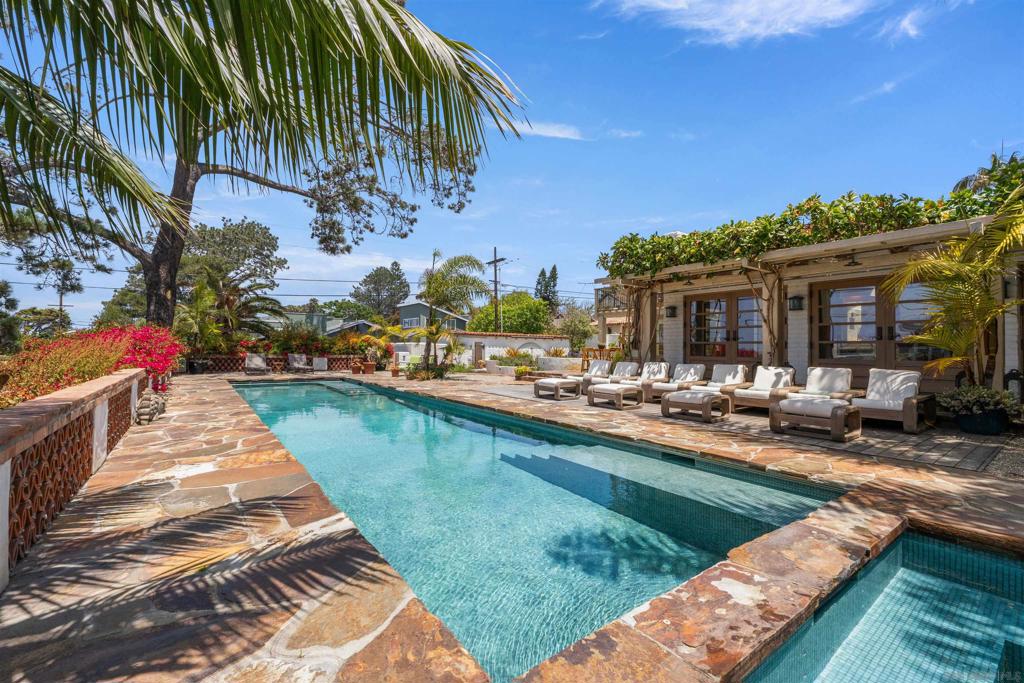 (Avail SEPT 1) EXPERIENCE THIS TRULY LUXURIOUS ESTATE IN THE HEART OF DEL MAR. This customized and private estate encompasses 2 LOTS , amazing location west of 101 and nearly 5,000 square feet with OCEAN VIEWS,pool,spa,wine cellar,herb garden,3+fireplaces, 3 en suite bedrooms with garden access,5 bathrooms, office, plus optional family room/bedroom with sea glass balcony and fireplace.It has a beautiful primary suite with temperature controlled closet, custom tub & shower and appointed privacy features, plus pool & spa access. There is an expansive living room with flagstone flooring, high volume ceilings, large fireplace and a wall of french doors out to the patios.It is truly made for entertaining, with 2 dishwashers,3 refrigerators, warming oven, butlers pantry. and prep area. The beautifully landscaped yard has a variety of fruit trees,( lemon, avocado)plus culinary herbs for entertaining. Take in the breathtaking ocean views from the pool & spa. It offers several areas for alfresco dining, a BBQ or watching the sunset by a cozy fire.It has a gated entry, parking for 4 cars, 2 AC units, and offers great privacy from the mature landscaping. The bedrooms have outside garden areas for relaxation or taking in the ocean breeze.Just minutes to the beach, shops, restaurants, library, cafes and renown DEL MAR PLAZA ! This home is available for long or short term leasing.Your most discerning clients will savor the opportunity to call this bespoke estate… their HOME.(July and August 2025 not avail)Summer rates are $32,000 month It is on double lot with APN’s (300-092-20-00, 300-092-19-00)Home is currently furnished beautifully, but can be unfurnished for long term lease. It is available for long or short term. Racing and vacation rental months are $32,000/month. Long term year lease $28,000. 2nd floor family room has bathroom, large ocean view balcony,fireplace and can be furnished for 4th bed. Owners pay weekly cleaning service, pool, spa, gardener,and landscape water.