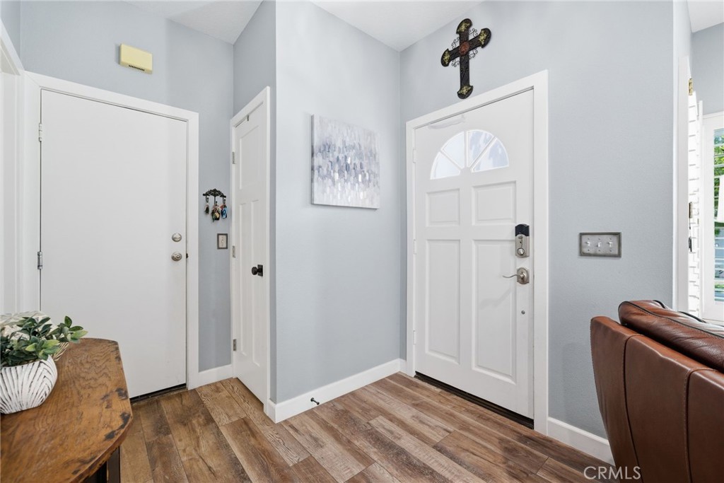 Welcome to this beautifully remodeled end-unit townhome ideally located in the heart of Aliso Viejo, just a short walk to Springdale Park. This light-filled home offers four bedrooms plus a spacious loft, providing exceptional flexibility for today’s lifestyle. The fully remodeled kitchen features white shaker-style cabinetry with pull-out drawers, quartz countertops, tile backsplash, and a six-burner gas range. Stainless steel appliances, abundant counter space, and generous storage make this kitchen both stylish and highly functional. The living room showcases laminate flooring, a ceiling fan, built-in speakers, plantation shutters, and convenient under-stair storage. A cozy fireplace with a custom tile surround and white mantel anchors the space, while a new contemporary black stair railing adds a modern design touch. All bathrooms have been completely remodeled, featuring new cabinetry, sinks, fixtures, and custom finishes throughout. Upstairs, you’ll find four bedrooms plus a loft, all with ceiling fans, shutters, and no carpet. A large linen closet is conveniently located off the hallway. The primary suite offers a striking accent wall with wood panel detailing, a walk-in closet, and a stunning spa-like bathroom with dual sinks, custom tile work, and an oversized shower with a built-in seat. Enjoy a private, enclosed backyard with ample outdoor space for relaxing or entertaining. The garage features a clean epoxy floor, adding both style and durability. Located in a desirable community with a pool and spa, this move-in-ready home combines thoughtful upgrades, modern finishes, and an excellent Aliso Viejo location.