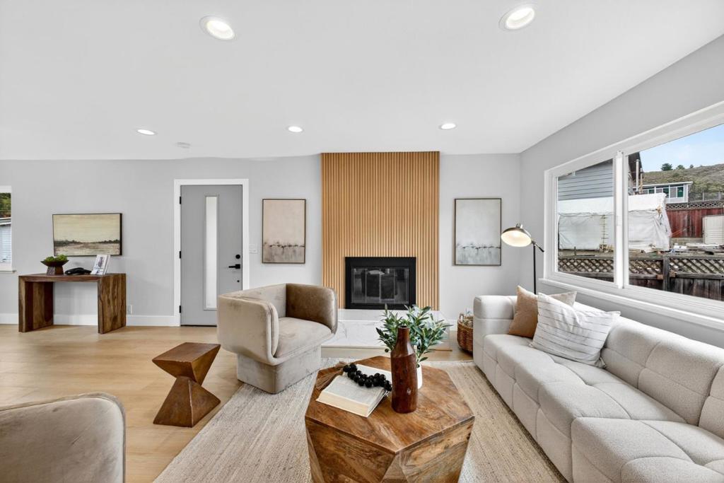 Modern Comfort Meets Coastal Living – Welcome to your dream home in Pacificas desirable Sun Valley neighborhood! This fully remodeled residence is perfectly designed for todays lifestyle. Every detail has been thoughtfully reimagined, blending comfort, sophistication, and functionality. Step inside to a bright & inviting living room, where the fireplace with a contemporary sleek new facade sets the tone. Enjoy abundant natural light, brand-new dual-pane windows, & modern recessed lighting throughout. Fresh interior & exterior paint, new luxury vinyl flooring, & updated bathrooms w/chic finishes give the home a modern, stylish feel. The chefs kitchen is the heart of the homefeaturing SS appls, quartz ctops, designer cabinetry & kitchen peninsula. A versatile downstairs FR adds extra flexibility, perfect as a home office, game room, or guest space. The finished 2-car garage shines w/fresh paint & a modern garage door. Outdoor living is effortless w/a low-maintenance backyard, complete w/a sprinkler system & serene mountain views. Best of all, youre minutes from shopping, dining, scenic hiking trails, and sandy beachesyet just 20 minutes to SFO & less than 30 minutes to downtown SF.This Sun Valley gem is move-in ready, turnkey, and waiting for its next chapteryours!