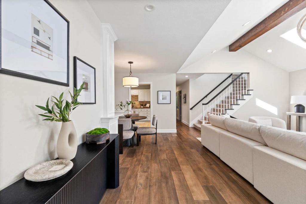 Welcome to 1125 Virginia Avenue, nestled in the highly sought-after Woodside Plaza area of Redwood City. This elegant and modern two-story home offers a generous 2,620 sq ft of living space, designed to accommodate both comfort and style. Upon entering, you’ll be greeted by a lovely living room with high ceilings and skylights that bathe the space in natural light, complemented by a cozy fireplace and hardwood floors. The separate dining area, enhanced with wainscot wood detailing, sets the stage for friendly gatherings. The chef’s kitchen is a culinary delight, featuring a center island with seating, a gas stove, two ovens, and an eat in kitchen. This area seamlessly extends to a deck and a large private landscaped backyard. Upstairs, the primary suite is a sanctuary, complete with a private patio, two walk-in closets, and high ceilings. An additional upstairs ensuite bedroom offers flexibility and privacy for family or guests. Three more bedrooms and a full bathroom are located on the main level. Modern amenities such as air conditioning, solar, a separate laundry/mud room, and private outdoor spaces ensure comfort and convenience throughout. Situated near Red Morton Park and local amenities, this home is an idyllic retreat for those who appreciate quality and location.