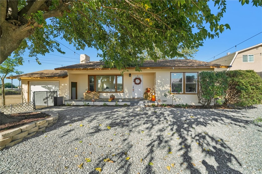 Beautifully Renovated Ranch Home with Updated ADU on Over an Acre; Live, Work & Earn! Welcome to this thoughtfully upgraded ranch-style property offering comfort, functionality, and multiple-use potential. The main home is approx. 1,138 sq ft with 2 bedrooms, 1 fully renovated bath, plus a flexible bonus/flex room ideal as a 3rd bedroom, office, or studio. Enjoy a cozy fireplace and a long list of upgrades: new recessed lighting, luxury laminate flooring, baseboards, interior paint, ceiling fans, closets, water heaters, and a NEW 3-TON HVAC (heating & cooling). The brand-new kitchen features new cabinets, dishwasher, stove/range, and an attached laundry area with new windows. The updated ADU (approx. 576 sq ft) offers an oversized bedroom, three-quarter bath, generous storage, and all-new finishes (floors/paint/baseboards); perfect for extended family or income potential. Outdoors, enjoy desert-style, low-maintenance landscaping around both dwellings. The over-1-acre lot includes a chicken coop, dedicated small-animal area, tool shed, 1-car garage, and a long driveway with room for multiple vehicles; great for car enthusiasts or extra parking. Business & zoning upside: Situated along a well-trafficked road for visibility and potential foot traffic, the property’s versatile zoning (buyer to verify) may accommodate multiple uses; an excellent live/work opportunity. Live in one, work from home, and rent the ADU; or use both residences for multi-generational living and added income streams. Surrounded mostly by tract homes, this rare oversized lot stands out and may offer room for future development or additional ADUs (buyer to verify). Conveniently located near schools, hospitals, shopping, and the 60 & 10 freeways, framed by breathtaking mountain views. With approx. 1,714 sq ft combined living space, this is a unique chance to secure your ranch retreat with income and business potential; first open house this weekend; don’t miss it!