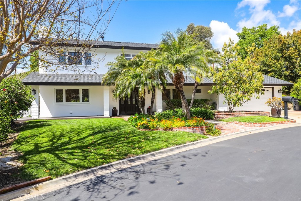 Move-in ready! Lovely family home in the Exclusive El Serrano Estates neighborhood , a private 13 home enclave in the heart of North Tustin. Rarely on the market. Easy walking distance to acclaimed Arroyo Elementary and Foothill High. Central HOA Pool, with adjacent shallow kids pool. No pool maintenance costs or headaches. Large barbeque, entertainment area poolside. Multiple mature fruit trees, including avocado trees on property. Storage sheds and garden areas. Exterior decking. Huge, gorgeous kitchen, with adjacent breakfast nook. Custom cabinets. Kitchen is connected to the large, open Family room. Bath rooms completely redone. Dual sinks. Large shower in Primary. Walk-in closets. Mirrored closet doors. Separate Dining room. Den or Office downstairs–Possible bedroom. Brand new upgraded roof. See it before prices go up!