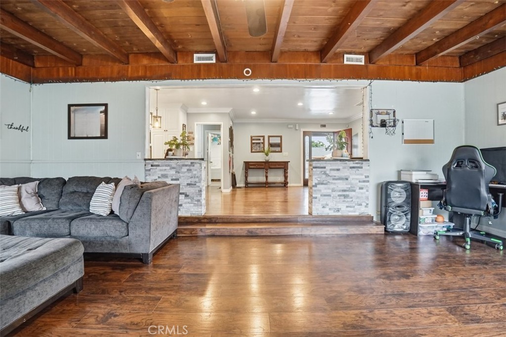 Experience Elevated Living in Santa Fe Springs California Welcome to 11423 Fredson Street, a beautifully updated home that blends timeless charm with modern comfort. Nestled on a quiet, well-kept street. This elegant single-family home offers a serene lifestyle with premium convenience. As you step inside you will be greeted by a bright, inviting living room adorned with rich hardwood flooring, stunning exposed beams and an inviting gas/wood-burning fireplace. It is a perfect centerpiece for cozy evenings or sophisticated gatherings. With approximately 1,218 sq ft of thoughtfully designed living space, this home provides both openness and intimacy. The residence sits on a spacious 5,355 sq ft lot, offering a private outdoor oasis ideal for morning coffee, weekend relaxation, or stylish entertaining. Enjoy the ease of an attached garage, a long driveway, and a beautifully manicured setting that enhances the home’s curb appeal. :Luxury Features & Highlights: Elegant hardwood floors, elegantly exposed ceiling beams open concept and a classic fireplace that creates a warm, upscale atmosphere. Bright, spacious floor plan ideal for refined living Large private yard — perfect for outdoor lounging, gardening, or entertaining Quiet, established neighborhood with exceptional pride of ownership Convenient access to the 605 freeway, shopping, dining, and local parks Near top community schools, including Jersey Avenue Elementary Comfort systems include wall heating and A/C to keep the home pleasant year-round Whether you’re seeking a peaceful retreat or a place to entertain with style, 11423 Fredson Street delivers comfort, charm, and elevated living in one of Santa Fe Springs’ most desirable residential pockets.