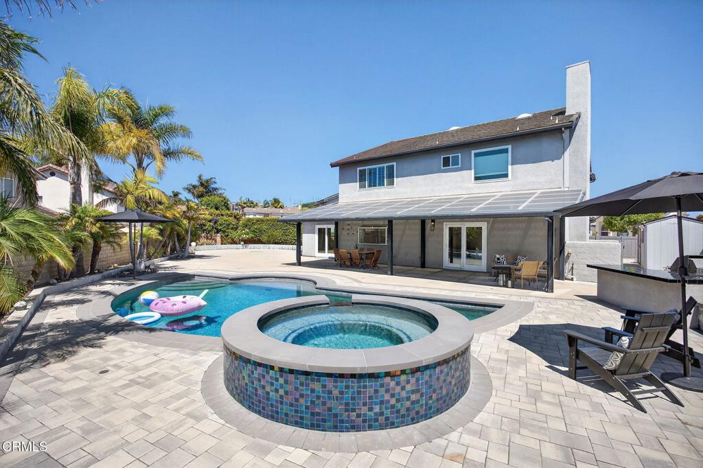First Time on the Market in Presidential Estates! And what an entertainer’s backyard! Welcome to this rare opportunity to own a custom-built Presidential Estates (Plan 3A) home, crafted by Cherrie Construction in 1994 and lovingly maintained ever since. Nestled on a quiet cul-de-sac in one of Ventura’s most sought-after neighborhoods, this residence blends timeless design, modern upgrades, and a backyard oasis that truly sets it apart. Step inside to a grand foyer and soaring ceilings that immediately set the tone. Plantation shutters throughout add a timeless touch to the home’s warm and inviting design. The thoughtful floor-plan includes a downstairs bedroom and full bath, along with formal dining and living areas that provide the perfect backdrop for both entertaining and everyday living. The spacious kitchen, complete with large pantry, flows seamlessly to the family room and breakfast nook–truly the heart of the home–and all overlooking the spectacular backyard. Upstairs, a versatile loft with built-in cabinetry offers the perfect office or study. Two additional bedrooms share a well-appointed guest bath, while the primary suite provides a retreat with a newly remodeled bathroom and expansive walk-in closet. Outdoors, your private paradise awaits. Anchored by a saltwater pool and spa–originally built in 2004 and reimagined in 2021–the backyard is an entertainer’s dream. A large covered patio, which also hosts the home’s solar array, offers ample space for lounging and dining. A built-in Lynx barbecue, expansive concrete entertaining areas, and lush landscaping create the ideal setting for everything from poolside afternoons and family celebrations to large festive gatherings. Designed for comfort and connection, this backyard is the centerpiece of the home and was built for making memories. Additional highlights include a freshly painted interior, water softener, newer vinyl fence, large Tuff Shed, a spacious laundry room with utility sink, a 3-car garage with expanded driveway, and owned solar with newer central A/C for year-round efficiency and comfort. Perfectly located with easy access to the 126 freeway, nearby shopping and dining, and just minutes to Ventura Community Park & Aquatic Center as well as the scenic hiking and biking trails of Harmon Canyon Preserve. This exceptional home offers the rare combination of timeless quality, modern upgrades, and an entertainer’s backyard–all in one of Ventura’s premier neighborhoods.