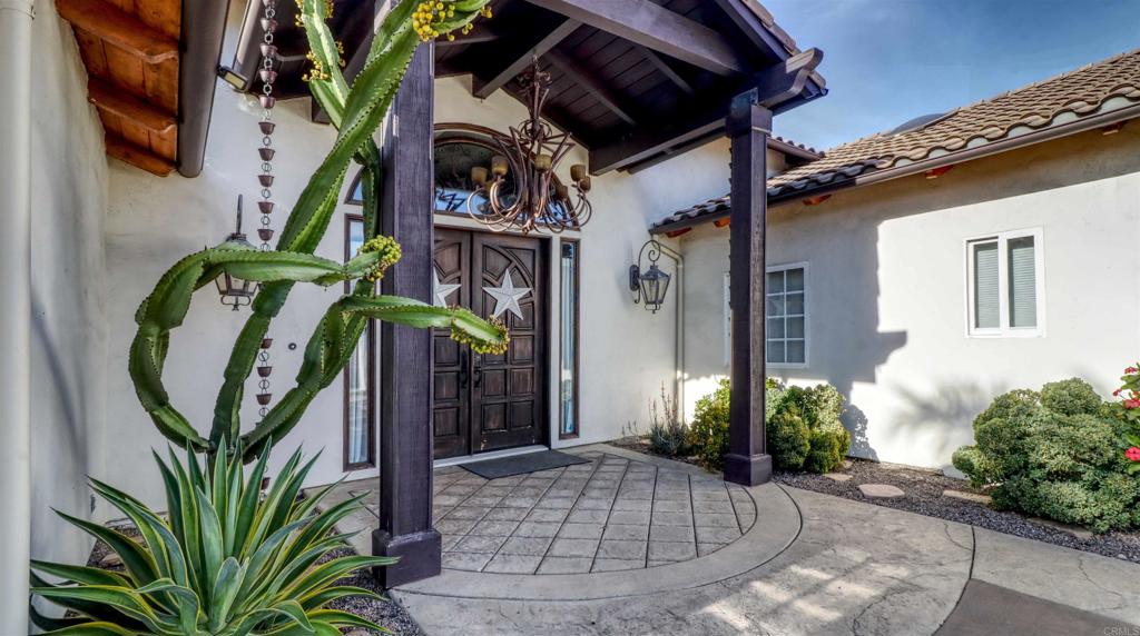 Welcome to Valley’s View – An Equestrian & Entertainer’s Dream If horses could talk they’d tell you this property isn’t just a home—it’s a lifestyle. Nestled in the peaceful foothills of Valley Center, this custom single-story estate offers luxury living with land, flexibility, and charm that’s hard to find. Step inside and you’re greeted by soaring 18-ft exposed beam ceilings and an open-concept layout that flows seamlessly into sunset views through double French doors. At the heart of the home is a dramatic stone fireplace—perfect for cozy nights and quiet mornings. The private primary suite features a spa-style bath with a jetted tub, walk-through closet with barn doors, and panoramic views that’ll make you forget you’re still in Southern California. The kitchen offers newer appliances, a cozy morning TV nook, and effortless access to the outdoor living spaces—where the real magic happens. Resort-style amenities include a sparkling pool with Baja shelf, fire pit, outdoor shower, covered patio, and low-maintenance landscaping made for golden hour gatherings. For the equestrian at heart (or future hobby farmer), the property features a 3-stall barn with a tack room, space for large turnout pens, and a shaded riding arena—plus vehicle access from the easement road for added convenience. Currently used as a workshop, this flexible space is ideal for animals, gardening, storage, or creative projects. The tack room? Perfect for tools, toys, or yes—saddles and hay. And then there’s the secret sauce: a fully graded lower pad with its own access, ready for an ADU, guest house, arena, or even income-producing rental. The oversized driveway fits at least 11 vehicles, RVs included. Additional perks include owned solar (for both home and pool), new 3-zone HVAC systems, new garage doors, a huge attic storage space, and a dedicated electrical panel prepped for backup power. Whether you’re looking to build, host, ride, relax, or generate income—this one-of-a-kind property gives you the freedom to do it all. Come experience Valley’s View for yourself. He’ll be waiting.