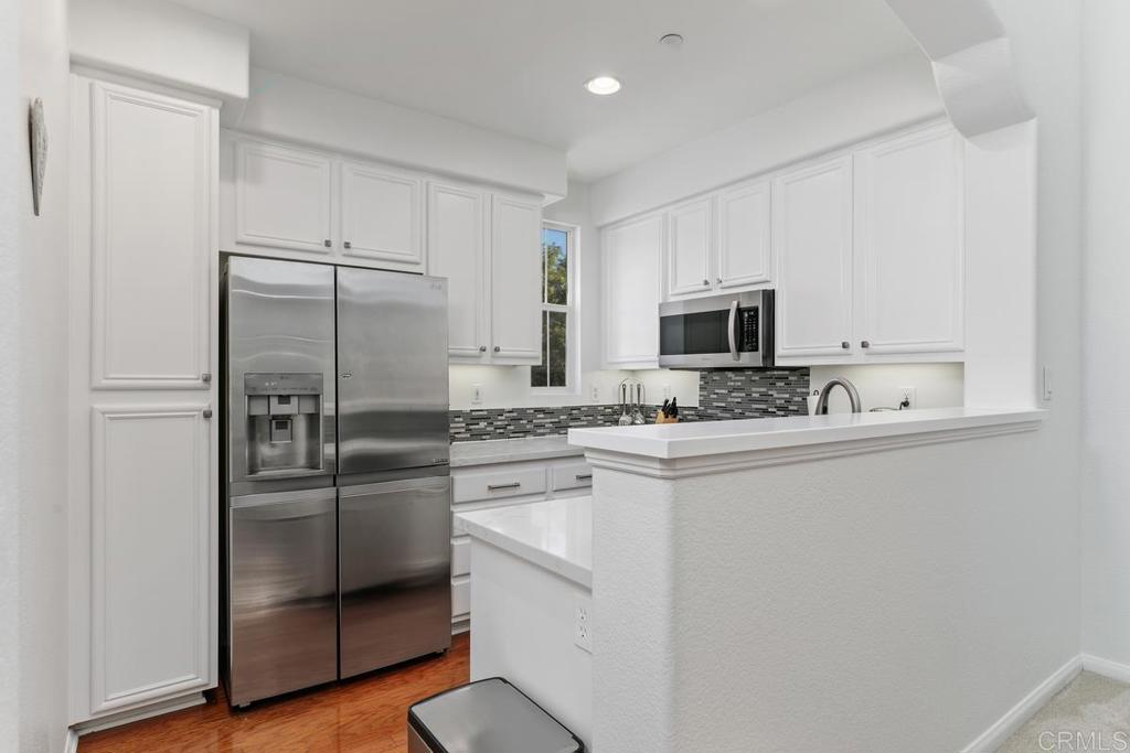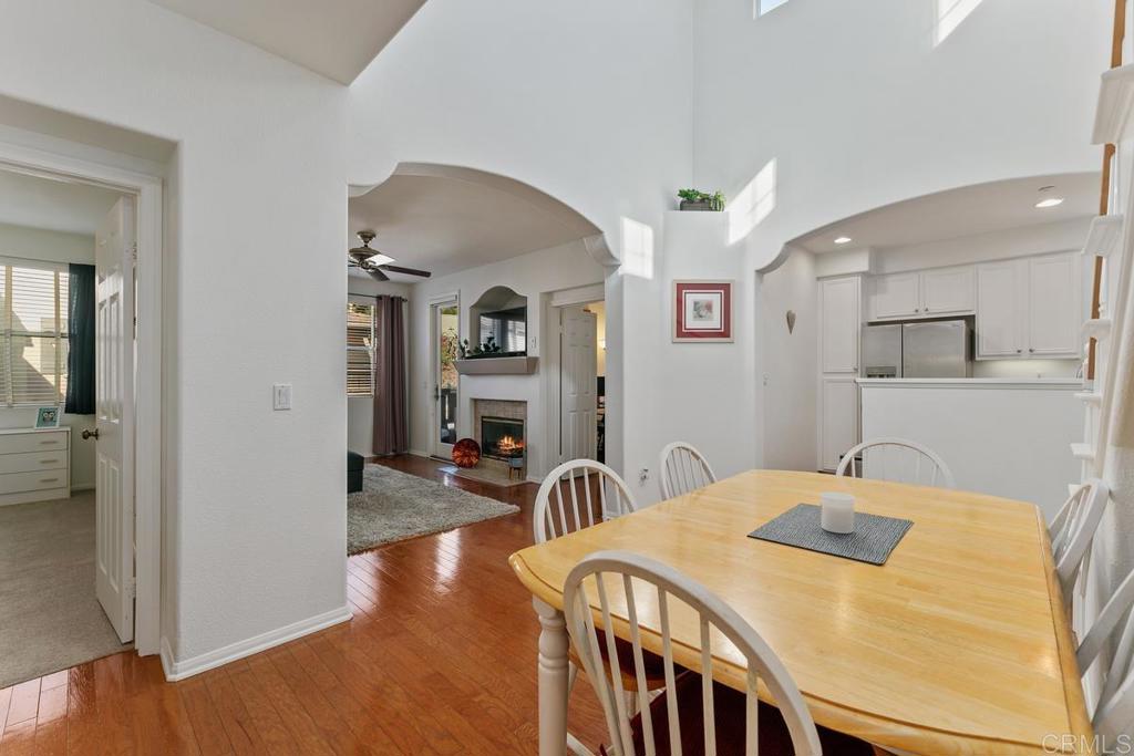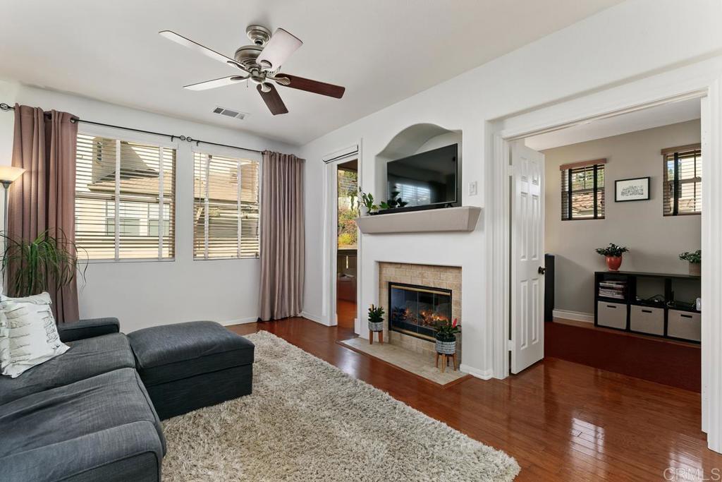 NEW PRICE! Gorgeous, highly upgraded San Elijo Hills townhome! This stunning corner unit home is located in the desirable gated Springfield community a few blocks away (or a trail walk!) from the town center, parks and top-rated schools. This light-filled 2 bedroom plus OPTIONAL 3rd Bedroom/office/bonus room, 2.25 (extra sink!) bathroom home is upgraded with newer appliances, custom backsplash, new sink, quartz countertops in the kitchen and bathrooms, tile in the master shower and newer flooring in the bathrooms. This beautiful home features hardwood flooring, premium carpet in bedrooms, custom paint throughout, a cozy fireplace, and balcony off the family room. One bedroom/bathroom plus the den/bonus room with double doors is located on second level, and the private primary suite is on the upper level. Laundry is located in the 2 car attached garage and this home comes equipped with fridge, washer and dryer. Springfield is a desirable secure, gated community with a pool and spa. Enjoy all that San Elijo Hills has to offer with 18 miles of trails a unique town center with restaurants, shopping and fitness and a sense of community that is hard to find!