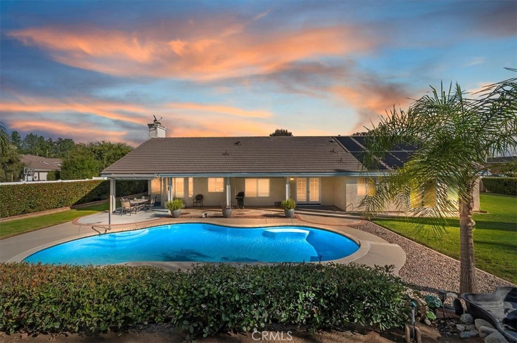 Rare combination to have this popular floorplan, single story, large lot, 3 car garage, and a POOL at this price. Beautiful 4 bedroom, 2.5 bath home with RV parking potential, option for two driveways and a POOL! This home has it all!! Fantastic home on nearly half an acre, plenty of room for entertaining and relaxing in this tranquil backyard with a large stunning pool, mature landscaping, covered patio, and room for year round entertaining. This home features vaulted ceilings, tile flooring, lots of windows and sliding doors to let in all the natural light. Kitchen with island and bar seating that opens up to the family room with a fireplace for those chilly nights. Primary bathroom has a dual sink vanity and a separate shower and soaking tub. Large laundry room with sink and plenty of cabinets for storage. Spacious guest bedrooms, fantastic views, quiet neighborhood…updates inside and out.