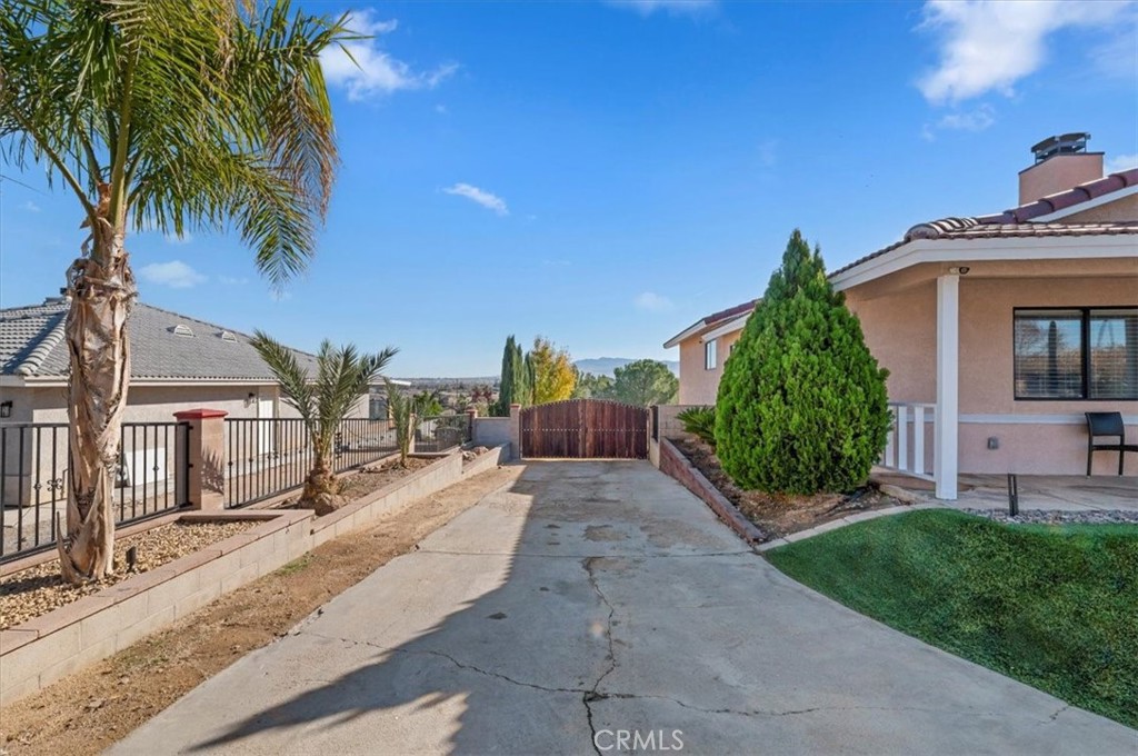 TWO HOMES UNDER ONE ROOF — the perfect setup for extended or multi-generational living! This spacious Hesperia property welcomes you with a half-moon driveway featuring dual entrances through automatic wrought-iron gates, offering both convenience and a striking first impression and with PAID OFF solar panels! Inside, you’ll find 5 bedrooms and 3 baths thoughtfully split between two levels. Upstairs includes 3 bedrooms, 2 baths, a bright living room with a dual-sided fireplace, a formal dining room, and a kitchen with its own dining area. Downstairs functions like its own private residence, complete with 2 bedrooms, 1 bath, and a large family/game room with a wet bar/kitchenette — ideal for extended family, guests, or rental potential. The home has been refreshed with new interior and exterior paint, plus numerous updates including granite surfaces, water heater, sinks, garbage disposal, toilets, faucets, hardware, fixtures, resurfaced cabinetry, bamboo wood flooring, ceramic tile, French doors, and crown molding. Enjoy mountain views from the balcony for a peaceful morning or sunset moment. Outside, the expansive fenced yard features block walls and wrought iron, mature grass, trees, and fruit trees, RV parking, and a brand-new firepit and entertaining area — perfect for gathering with loved ones.