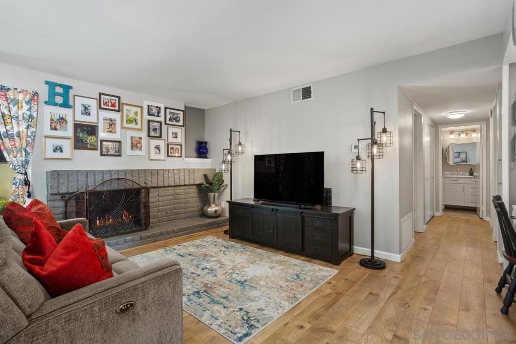 Welcome to your dream home in the beautiful & serene Campana Villas! This rare single-story gem boasts an exceptional blend of modern upgrades & natural beauty, offering a peaceful retreat with every comfort. Step into a large, state-of-the-art remodeled kitchen, featuring high-end newer appliances, sleek, newer cabinetry with convenient pull-out drawers & lazy Susans, & a movable island/breakfast bar with a food grade stainless steel top, perfect for food prep or baking. Enjoy the luxury of stunning, remodeled bathrooms, a newer A/C & heating system, & a large, gated backyard patio backyard complete with low-maintenance synthetic turf. Take in the views of the lush greenbelt with a tranquil waterfall & pond, surrounded by towering pines, bougainvillea, Bird of Paradise, & other vibrant blooms—truly a private oasis. Inside, the expansive living room invites you to relax by the cozy gas fireplace, while all three spacious bedrooms offer comfort & flexibility for any lifestyle.As a resident, you’ll enjoy membership at the exclusive Rancho Bernardo Swim & Tennis Club (with an annual fee), adding incredible value & community amenities to this already exceptional lifestyle. Don’t miss your chance to own this beautifully upgraded, private single-level condo in one of RB’s most desirable communities within the Poway School District! There is one covered parking space. In addition, another space is available. There is also ample guest parking.