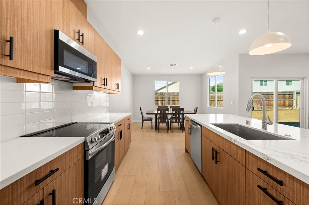 Welcome to this beautifully crafted brand-new home in Moreno Valley, offering 4 spacious bedrooms, 2.5 bathrooms, and 1,800 square feet of modern living space. Designed with comfort and convenience in mind, this single-story residence blends contemporary finishes with a functional floor plan ideal for today’s lifestyle. Step inside to an open concept living area filled with natural light, highlighted by a sleek kitchen featuring modern cabinetry, quartz countertops, and stainless steel fixtures. The primary suite offers a private retreat with a walk-in closet and a thoughtfully designed ensuite bath, complete with dual sinks and a walk-in shower. Three additional bedrooms provide flexibility for family, guests, or a home office. Set on a 7,405 square foot lot, the backyard is a blank canvas ready for your personal touch—perfect for entertaining, gardening, or creating an outdoor play space. Additional highlights include energy-efficient construction, a two-car garage, and fresh, contemporary finishes throughout. Conveniently located near schools, shopping, dining, and outdoor recreation, this home provides the perfect balance of neighborhood charm and easy access to everyday amenities. Whether you’re a first-time buyer or looking for the ideal family home, this property offers a rare opportunity to own new construction in one of Moreno Valley’s most established communities.
