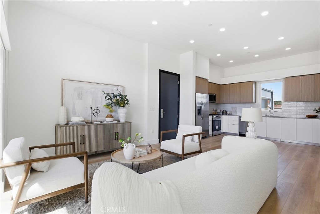 Top-floor new construction townhouse in prime Studio City with mountain views, high ceilings, and abundant natural light. This spacious 3BD/3BA luxury residence features an open floor plan with large living and dining areas and private patios for indoor-outdoor living. The gourmet kitchen includes ample storage and stainless steel appliances. Designer bathrooms offer modern tile, walk-in showers, and high-end fixtures. Wide-plank white oak flooring and oversized windows enhance the bright, airy feel throughout. Building amenities include ButterflyMX secure entry, fitness center, co-working lounge with Wi-Fi, Amazon lockers, EV charging, elevator access, security cameras, and gated garage parking. Located just minutes from Ventura Blvd dining and shopping, Trader Joe’s, Erewhon, Whole Foods, Studio City Farmers Market, CBS Studios, Universal Studios, and convenient access to the 101 and 405 freeways.
