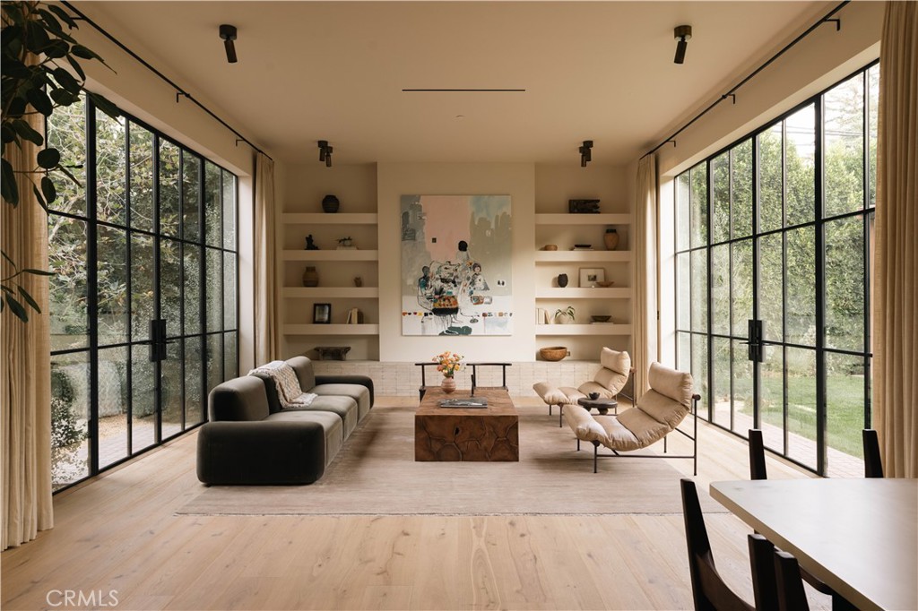 In the coveted Silver Triangle of Studio City, within the sought-after Carpenter School District, a rare architectural statement emerges—a home where craftsmanship and artistry merge into a singular vision of California living. Designed and built by Studio Rob Diaz, this newly constructed residence unfolds across 5,000 square feet on an 11,058 square foot lot, with 4 bedrooms, 4.5 baths, and an undeniable sense of presence. From the street, the orientation of shapes and textures hints at what lies within—an interplay of geometry and materiality executed with brilliance. A minimalist façade topped with Italian-imported terracotta roof tiles conceals an interior defined by warmth, restraint, and refinement. Inside, Belgian white oak floors and hand-finished Roman Clay walls soften the light that pours through soaring Euroline steel doors and floor-to-ceiling windows. Every surface is intentional, every line deliberate. Light itself is treated as art: Allied Maker pieces guide you through hallways, Roman & Williams illuminate the dining room and kitchen, Volker Haug accents the primary bedroom corridor, while the Apparatus Studio crowns the primary suite with sculptural fixtures above and in the spa-level bath. The chef’s kitchen is both centerpiece and sanctuary, anchored by Calacatta Paonazzo marble slabs, bespoke cabinetry, Spaces within hardware, Thermador appliances, a symphony of elegance and utility. The primary suite offers two private terraces, a spacious dressing room, and a bathroom where marble, dual showers, and a sculptural soaking tub invite ritual and repose. Additional amenities include a dedicated office, a wood-clad theater, Waterworks fixtures, integrated smart-home technology, Sonance in-wall speakers, EV charging, and solar panels. The exterior grounds mirror a private resort: a 50-foot black-bottom pool and spa stretch across cobblestone patios, while layered greenery and alfresco dining spaces deliver both seclusion and serenity. Perfectly positioned south of Ventura Boulevard, moments from Erewhon, The Shops at Sportsmen’s Lodge, Sugarfish, and the cafés of Tujunga Village, the home balances tranquility with accessibility. Outdoor lovers will appreciate Fryman Canyon nearby, while commuters benefit from swift access to the Westside, Hollywood, and Beverly Hills. The Hillslope estate is not just a home—it is a living composition of light, texture, and form that transforms everyday life into an experience of art.