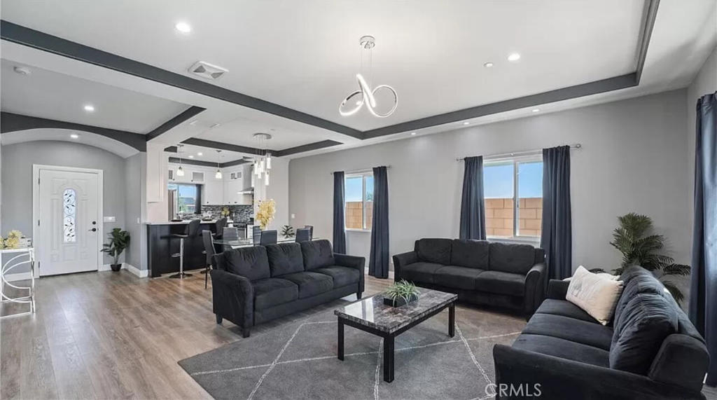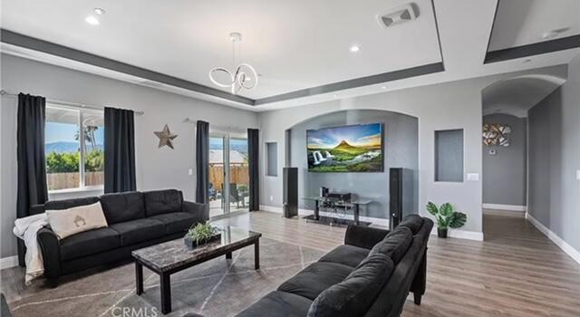 This is a Beutiful 4 bedrooms 2 Bathrooms Custom Built single-level HOME. Newer Construction with aopen concept Floorplan, decorative framing which includes arches, soffits double walled in some places around the house. There are special light fixtures color changing LED lighting, SOLAR PANELS, Tankless water heater,laminate flooring around the house Custom built Kitchen cabinets amde from maple wood, Quarts countertop, FIRE sprinklers and much more. Located in a desirable area in Desert Hot Springs.