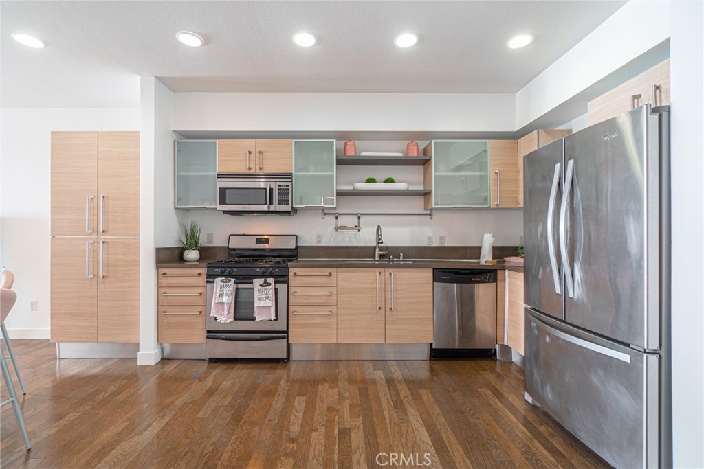 Located in the heart of Downtown LA. Chic and Modern 920 sq ft, 1 Bedroom, 1 Bath Condo on the 2nd floor. High-end finishes include rich wood floors, tall ceilings, European style cabinetry, brushed stainless steel kitchen appliances and modern fixtures. In unit washer and dryer included. Amenities include a furnished Lobby, full size gym, cybex machines, yoga room, pool w/ loungers, BBQ’s, spa, sauna, 24 hour security and concierge services. Includes 2 garage parking spaces. Walking distance to Shopping Plazas, Super Markets, Restaurants. Very convenient location, minutes away from Staples Center, LA Live, FIDM, Major Freeways, and more!