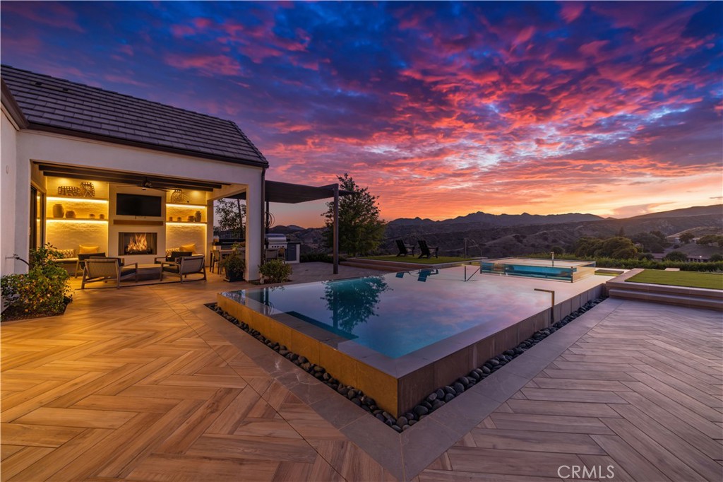 Welcome to 12401 Ridge Line, Luxury Single Story Home located in the prestigious and gated community of Porter Ranch! This former Toll Brothers model home offers the pinnacle of luxury living with unobstructed canyon views on a stunning lot, making it a true standout in the neighborhood. Enjoy one of the best and exclusive sunset views from the comfort of your own backyard, where you’ll find a sparkling pool & spa, mountain views, BBQ area, and meticulously designed landscaping that exudes elegance. The sale of this home includes all the furniture, adding an extra layer of convenience and value! Step inside to discover the chef’s kitchen featuring stainless steel appliances and a spacious walk-in pantry. Every corner of this home showcases upgraded finishes and impeccable detail, ensuring an unforgettable experience for both residents and guests. With ample living areas, this home offers functional office spaces, stunning hard flooring, and aesthetically pleasing bathrooms throughout. The master bath is a true sanctuary, boasting a soaking tub, an exquisitely designed and well lit walk-in closet, and a spacious glass standing shower. Additionally, the outdoor area of the master suite features a relaxing outdoor soaking tub in a privately closed area, adding a touch of tranquility to enjoy nature. Indulge in a lifestyle of opulence with scenic walking trails, breathtaking views, and an abundance of space. The backyard is highlighted by a captivating fireplace, epitomizing the quintessential California luxury lifestyle that dreams are made of. Take the first step towards your dream lifestyle today!