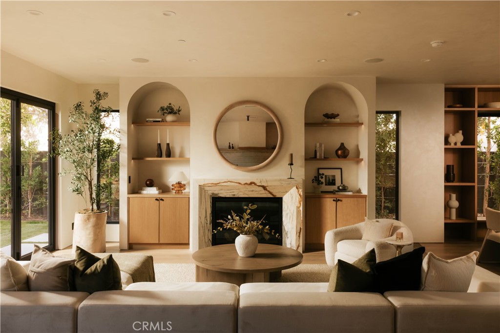 The Cedar House is an architecturally refined organic modern residence that blends natural materials with contemporary design. Wrapped in warm cedar siding and grounded by clean geometric lines, the home offers 4 ensuite bedrooms, 4.5 bathrooms, and seamless indoor-outdoor living in the heart of Mar Vista. Wide-plank white oak floors, Venetian plaster walls, and custom limestone accent walls create a soft yet sophisticated atmosphere throughout. Ten-foot ceilings enhance the scale and light, while white oak interior doors and custom cabinetry provide cohesion and warmth. A statement fireplace wrapped in Calacatta marble serves as a sculptural focal point within the living space. The open-concept kitchen and living room feature travertine countertops, custom white oak cabinetry, GE Signature Series and Thor appliances, alabaster and Calacatta light fixtures, and a walk-in pantry. Oversized sliding glass doors open effortlessly to a private backyard retreat designed for entertaining and everyday ease. The resort-style exterior includes a saltwater pool and spa with an automated pool system, outdoor kitchen setup, concrete hardscape, landscaped yard with natural grass, and multiple lounge areas that embody relaxed California living. Upper-level ensuite bedrooms offer privacy and balance, with balconies that capture natural light and coastal breezes. A fully integrated smart home system, hardwired security system, EV charger, and thoughtful architectural detailing complete the offering.