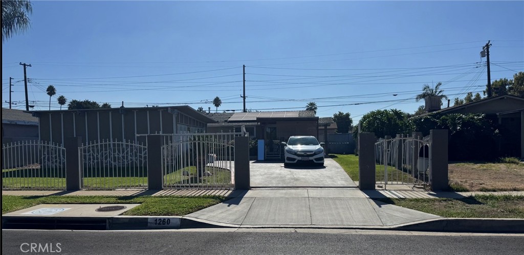 pool home ,welcome to this one story 3 bedroom 2 bath pool home, the high ceilings gives this 1,150 sq ft home look bigger than what it is. the open concept home gives it this warm and cozy feeling . kitchen boast a center island overlooking the living room . the living room over looks the large swimming pool for those hot summer nights . this home also boast new windows and sliding doors and new ac unit . it also has solar panels they are a lease and will transfer to new owner. the electrical panel is also new. home also has a detached two car garage with ADU potential , a long driveway with ample parking , and spacious front yard and backyard ideal for entertaining . the back yard also has a covered patio and storage unit for all your landscape and pool equipment . home is also gated for your security. laundry room is in kitchen area for easy access. master bedroom has its own restroom and shower and a sliding door that leads out to the front of home and blocked by garage for privacy. perfect for first time homebuyer.
