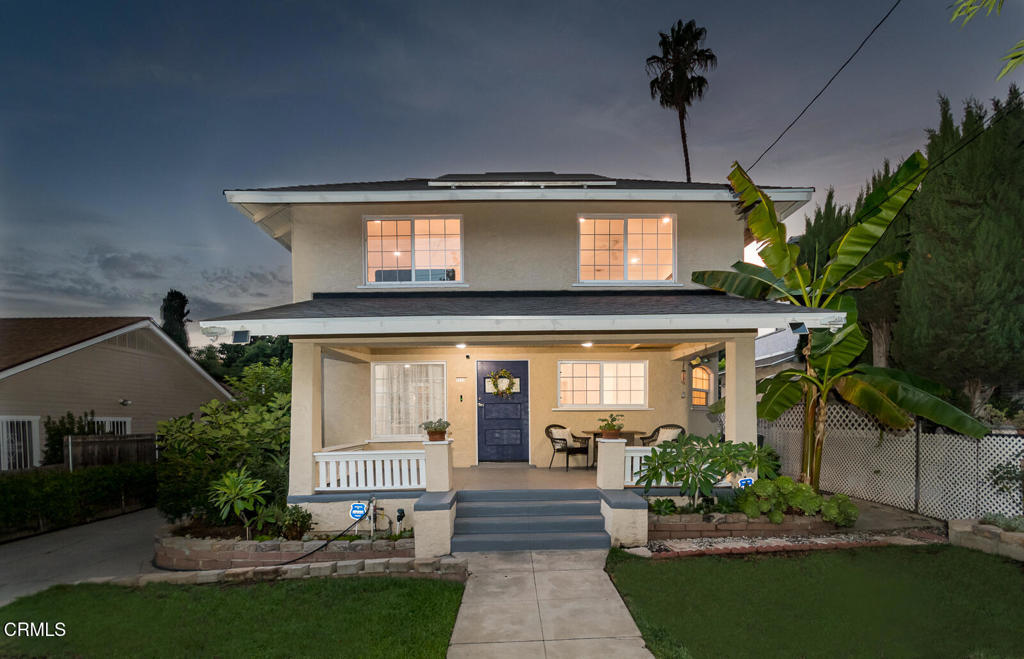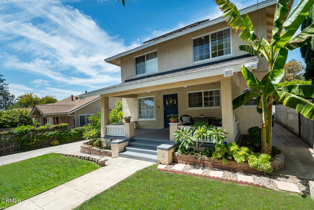 A thoughtfully landscaped front yard with succulents and fruit trees introduces this Pasadena bungalow, blending timeless character with modern updates. The welcoming covered porch opens to a spacious living room anchored by a fireplace and filled with natural light from large windows. Oversized pocket doors lead to the formal dining room with built-in cabinetry, creating a warm and inviting setting. An arched opening with a peninsula connects seamlessly to the expansive kitchen, equipped with stainless steel appliances, a window overlooking the outdoors, and direct access to the backyard.Just beyond the kitchen, a 3/4 bath with dual sinks and a separate water closet with shower opens to a large laundry room, combining function and convenience. A connecting hallway, accessible from both the kitchen and the living room, leads to a bedroom, the staircase to the second floor–illuminated by a large window–and access to the basement, currently staged as a media and creative studio with space for music, streaming, or recreation.The upper level offers four bedrooms, including a spacious primary bedroom. The additional bedrooms provide flexibility for family, guests, or a home office. A walk-in hallway closet and a 3/4 bath complete the second floor.Outdoor living includes an expansive fully covered paved backyard, thoughtfully designed as an all-weather retreat with generous space for lounging, dining, and play. A finished detached garage adds further versatility, ideal as a studio, workshop, or gym.Notable upgrades include solar panels for energy efficiency, a whole-house water softener, newer condenser, refinished wood floors, new attic insulation (2025), new roof (2025), dual-pane windows, and an EV charger outlet.Centrally located, this home is minutes from the Rose Bowl, Brookside Park, Old Town Pasadena, Lake Avenue shopping and dining, Caltech, and cultural landmarks, offering the perfect blend of Pasadena’s architectural heritage and modern living.