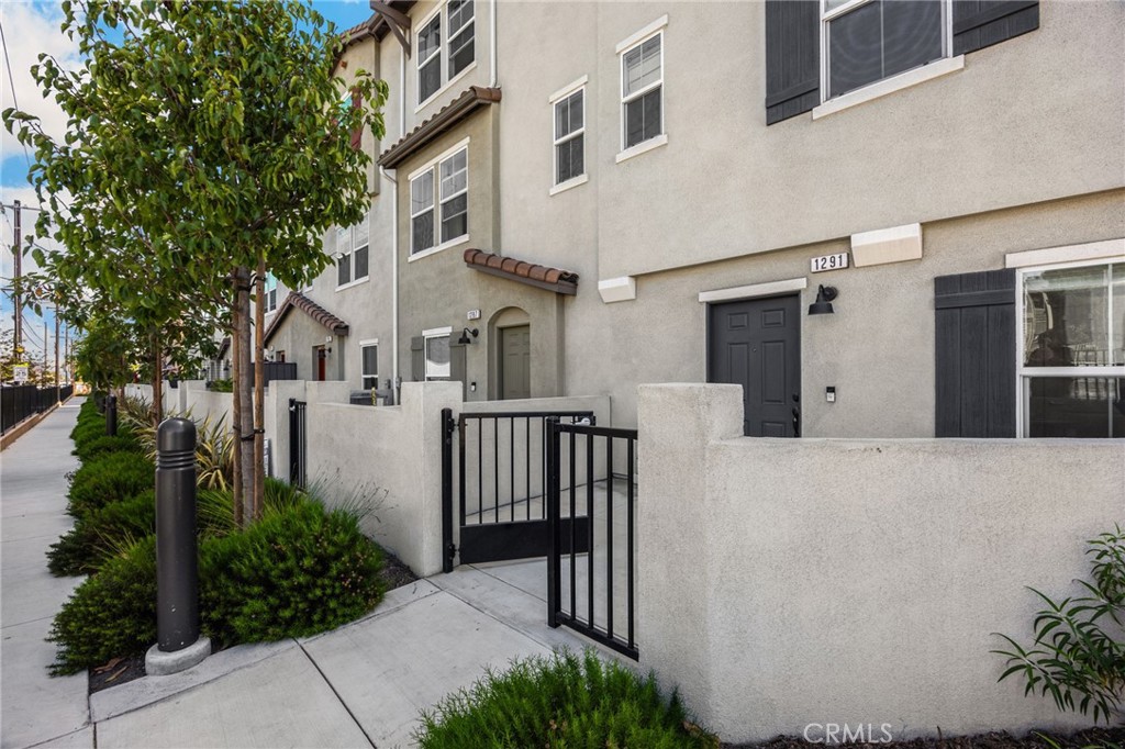 Discover elevated living in this stunning 3-story energy-efficient home, perfectly positioned as a desirable end unit for added privacy and exceptional natural light. Nestled within a gated community, this residence offers enhanced security and a tranquil lifestyle. The inviting front porch leads to a rear-facing 2-car garage and a versatile lower-level den with generous storage. The second floor showcases a spacious great room and a uniquely upgraded chef’s kitchen—exclusive to this home—featuring a stunning stone center island, walk-in pantry, Whirlpool stainless steel appliances, soft-close drawers, stacked upper cabinets, under-cabinet lighting, and sleek modern finishes. Upstairs, enjoy three bedrooms, two full baths, and a convenient laundry area. The luxurious primary suite includes a frameless glass shower, dual vanity, and a full-wall custom closet system. Smart home features include lien-free solar panels, Wi-Fi-enabled thermostat and oven, tankless water heater, and EV charging conduit. With easy access to major freeways, top employers, parks, shopping, and dining, this home blends comfort, style, and convenience in one exceptional offering.