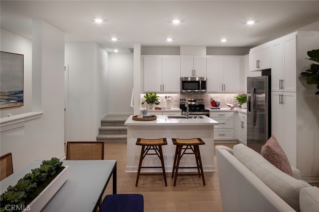 Move-In Ready – Final Opportunity Don’t miss your chance to own a home at Hayes at Eastvale Square—designer finishes and ready for immediate move-in! This multi-level residence offers a smart, modern layout tailored for today’s lifestyle. The main living level features an open-concept design that seamlessly connects the living room, dining area, and spacious kitchen—complete with a large island and seating space, perfect for entertaining. Sliding glass doors open to a generous covered deck, ideal for alfresco dining or relaxing outdoors. Upstairs, the primary suite offers a peaceful retreat with a well-appointed ensuite bathroom and walk-in closet. Two additional bedrooms provide flexibility for family, guests, or a home office. Additional highlights include a two-car garage, ample storage, and a convenient laundry area with stacked washer and dryer. Exciting lifestyle amenities are on the horizon, Future highlights include a sparkling pool, relaxing spa, fitness center, clubhouse, BBQ and picnic areas, playground, dog park, firepits, green spaces,, and a half basketball court—all connected by beautifully landscaped paseos.